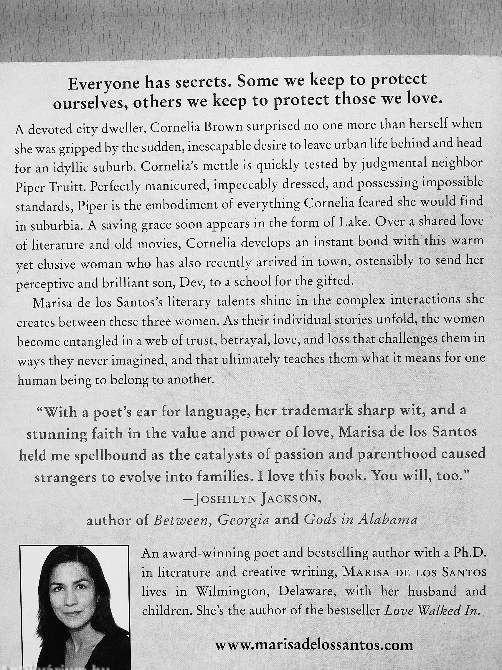 Marisa de los Santos's literary talents shine in the complex interactions she creates between these three women. As their individual stories unfold, the women become entangled in a web of trust, betrayal, love, and loss that challenges them in ways they never imagined, and that ultimately teaches them what it means for one human being to belong to another.