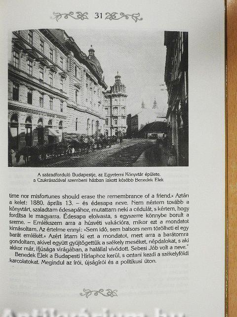 A mai gyerekek több, mint hárommillió példányban találkozhattak nevével, műveivel, utoljára a Magyar mese- és mondavilág három kötetével, melynek szépséges székely nyelvezete különös élményt nyújt az olvasónak. Benedek Elek azt mondotta, hogy ha a vadász nyúlra lő, akkor ő a nyúl pártján van, de ha a nyúl káposztába harap, a káposztát védi. Életével, emberi harcaival és a gyerekirodalom iránti rajongásával tudott ilyen példaképszerűen fennmaradni ekkora időn át. Ez a könyv sok érdekes képet tartalmaz, elsárgult, múlt századi fényképeket és későbbi tájképeket az Erdővidékről, Benedek Elek síremlékről és a kisbaconi emlékházról.