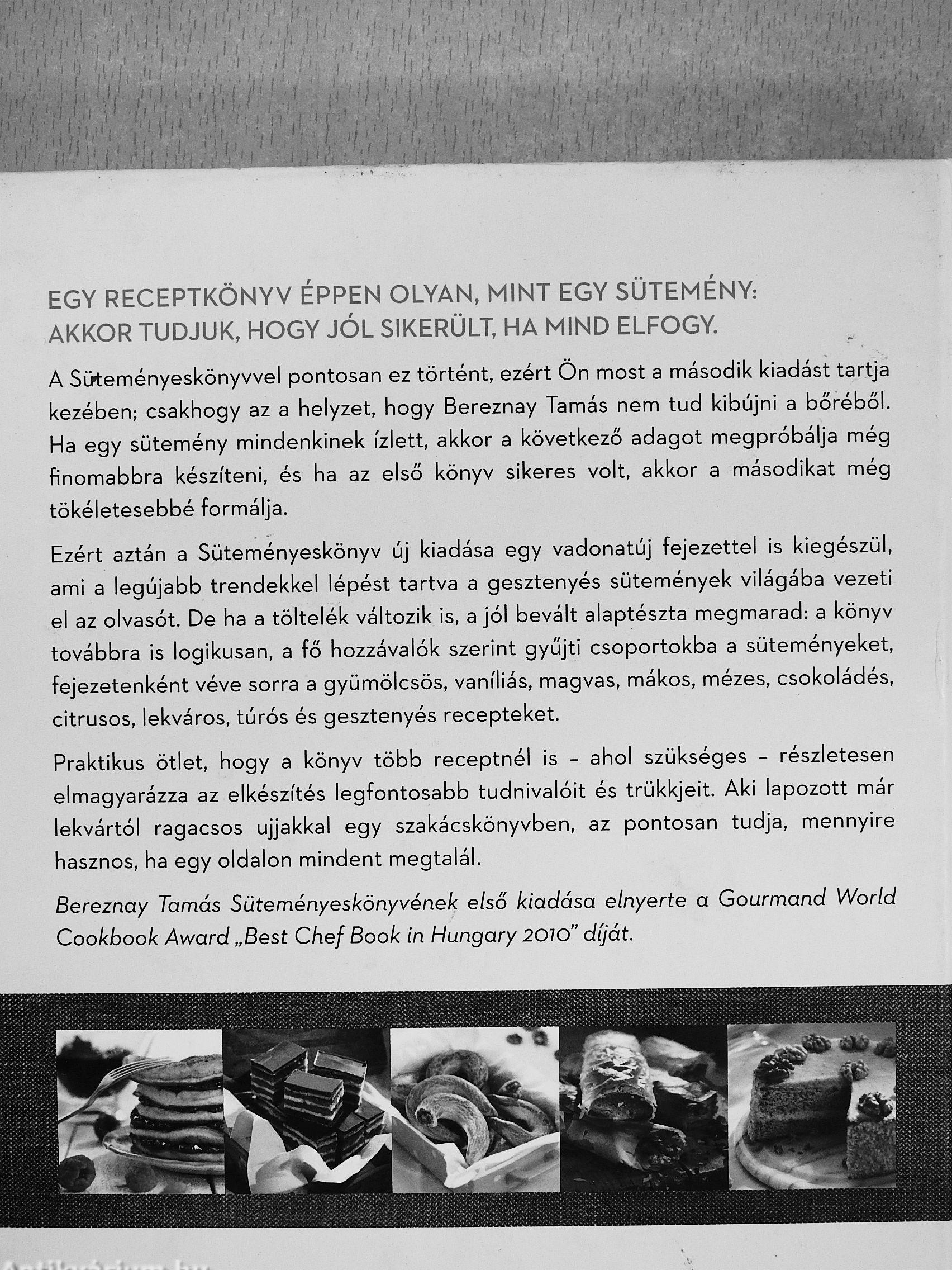 Bereznay Tamás Süteményeskönyvének első kiadása elnyerte a Gourmand World Cookbook Award „Best Chef Book in Hungary 2010" díját.