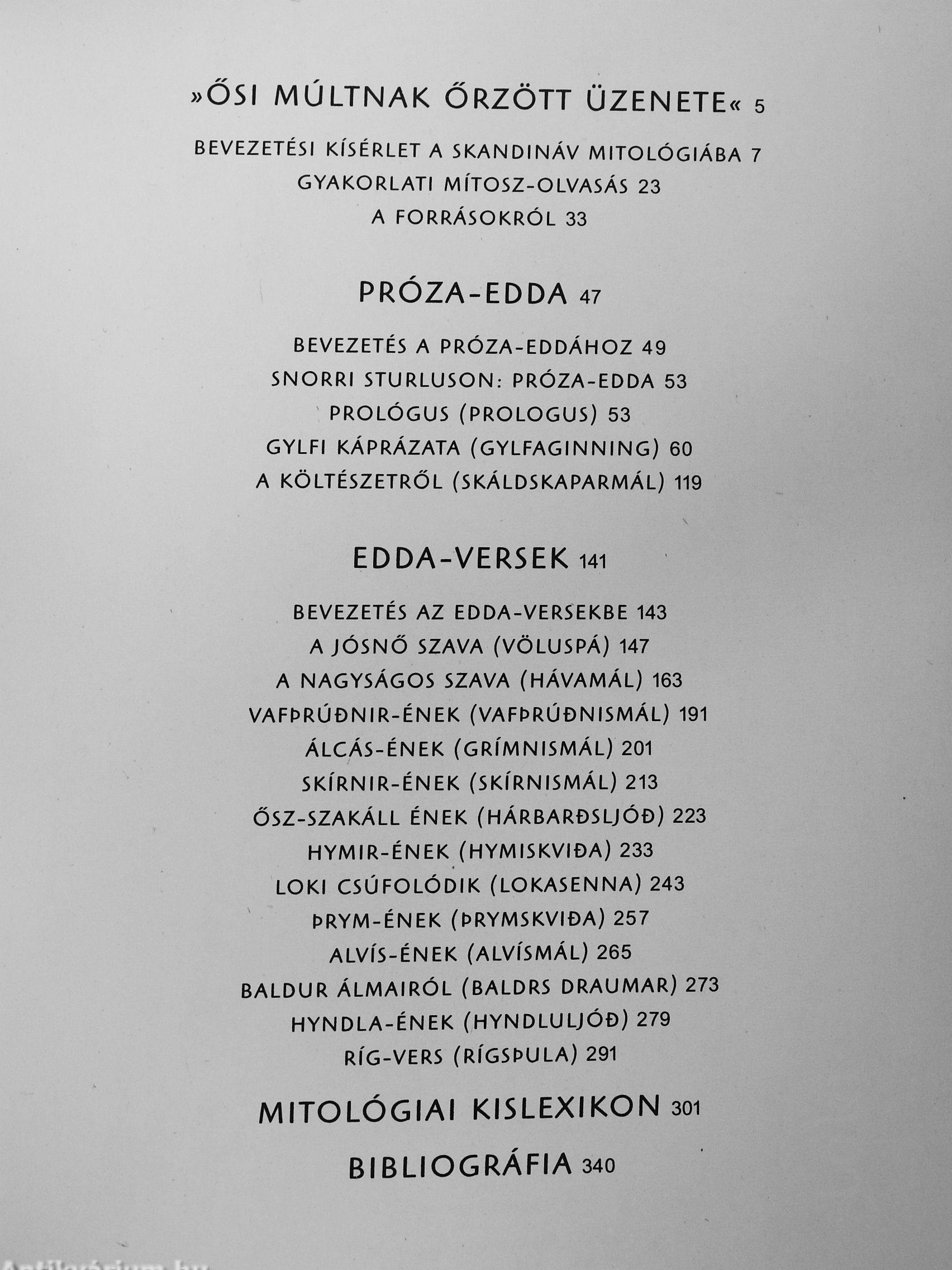 A kötet tartalmazza m^ a dtandínáv nwtDlógíának a 10. ét 13. század között Izlandon ízűletett két legfőbb ízővegfomtát a aeaő sokavatott fordításában elfő ízben magy^aruf megwlaló Próza-Eddát ét xí ugyancsak általa fordított mitológiai tárgyú Edda-veneket, a középkort világirodalom gyöngyszemeit Bevezetők és kommentárok íegítik a mai olvasót abban, hogy jaratosíá váljon ebben a térben és időben oly messzi v/lágban, éí telje» szépségükben élvezni tudja az ihletetten tolmácsolt veneket