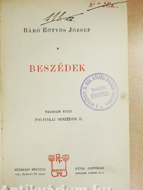 | Sorozatcím: | Báró Eötvös József összes munkái |