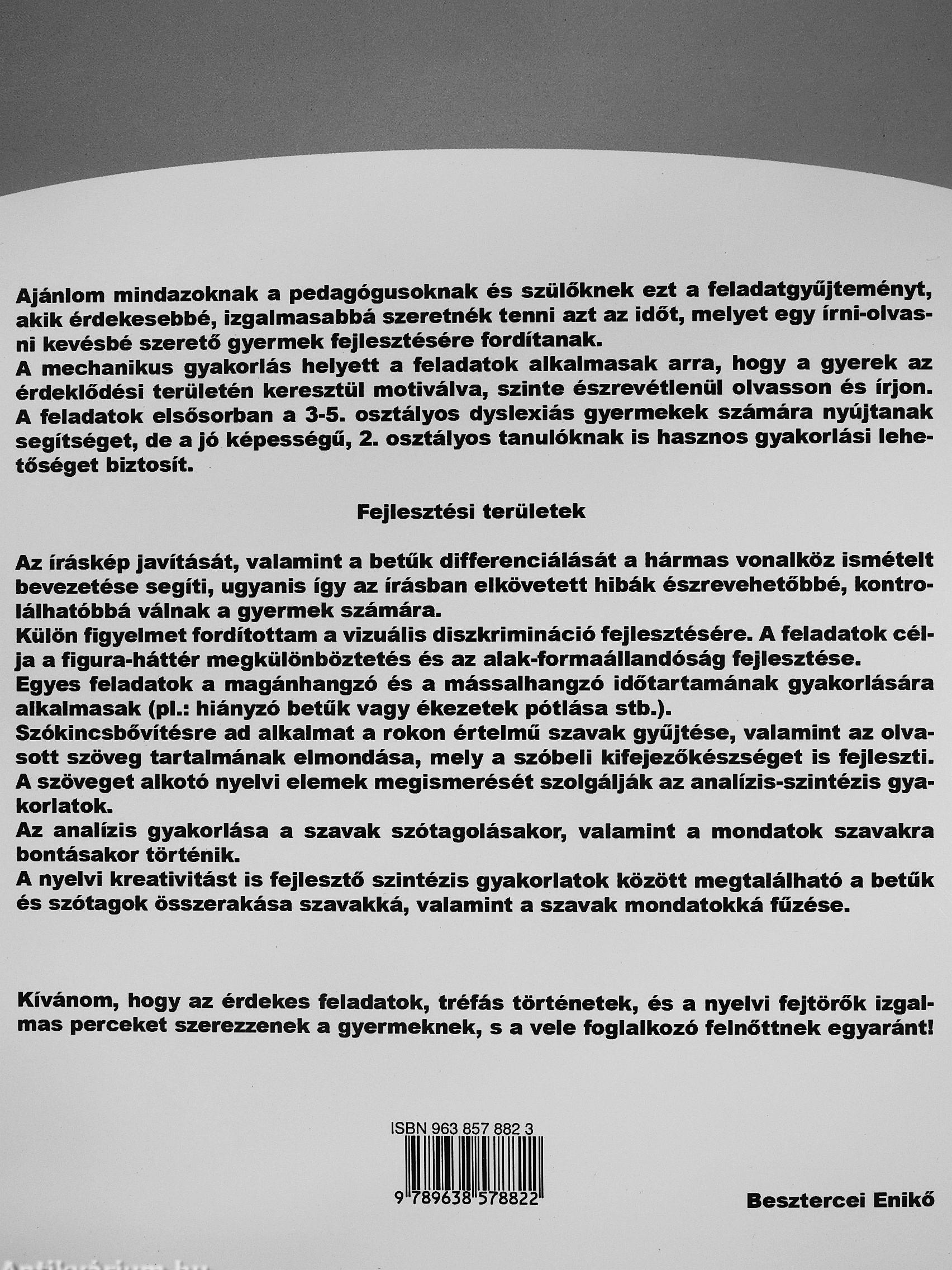 Kívánom, hogy az érdekes feladatok, tréfás történetek, és a nyelvi fejtörők izgalmas perceket szerezzenek a gyermeknek, s a vele foglalkozó felnőttnek egyaránt!