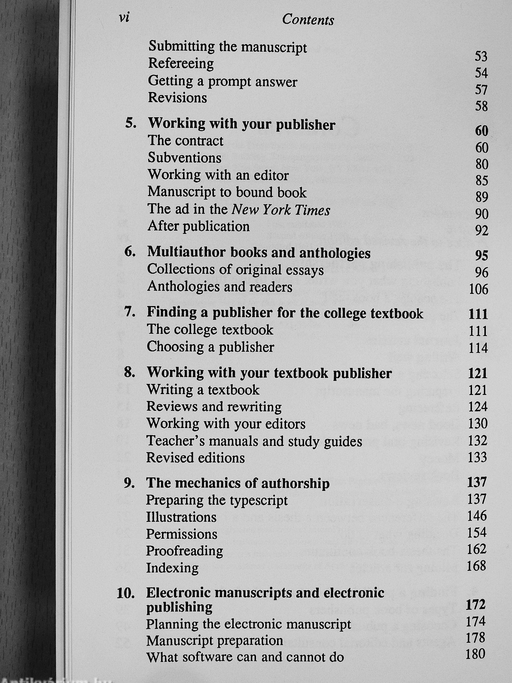Beth Luey - editor, author, lecturer, and former owner of her own small publishing company - explains how to choose a publisher and how to present a persuasive and well-planned proposal. Written in a conversational style that is interesting to read, her book introduces the reader to the standard publishing contract and offers advice on how to negotiate. She gives clear, common-sense guidance on preparing the final manuscript, applying for permission to quote, and producing suitable artwork. A new chapter prepared for this edition explains how authors and publishers can process electronic manuscripts and describes how computer disks can be used to generate camera-ready copy.