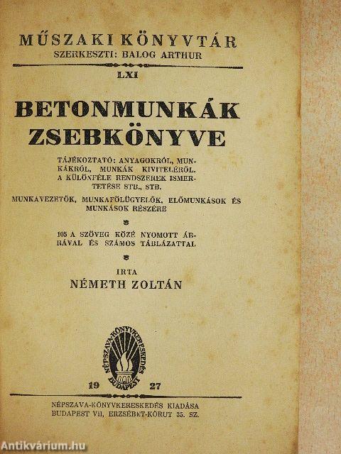 Betonmunkák zsebkönyve