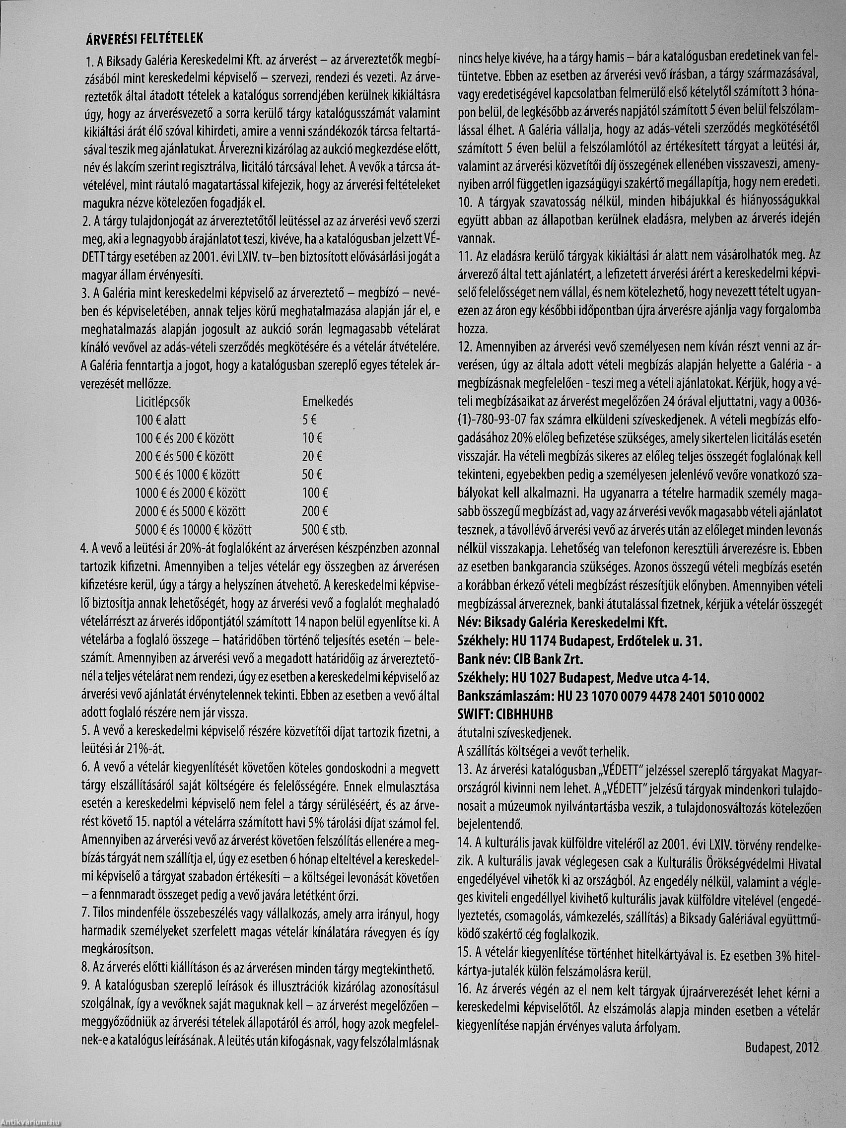 | Megjegyzés: | Kiállítási katalógus. Színes és fekete-fehér reprodukciókkal. Angol és német nyelvű árverési feltételekkel, angol nyelvű képaláírásokkal. Az árverés vezetője: Karafiáth Orsolya. További grafikusok a könyvben. |