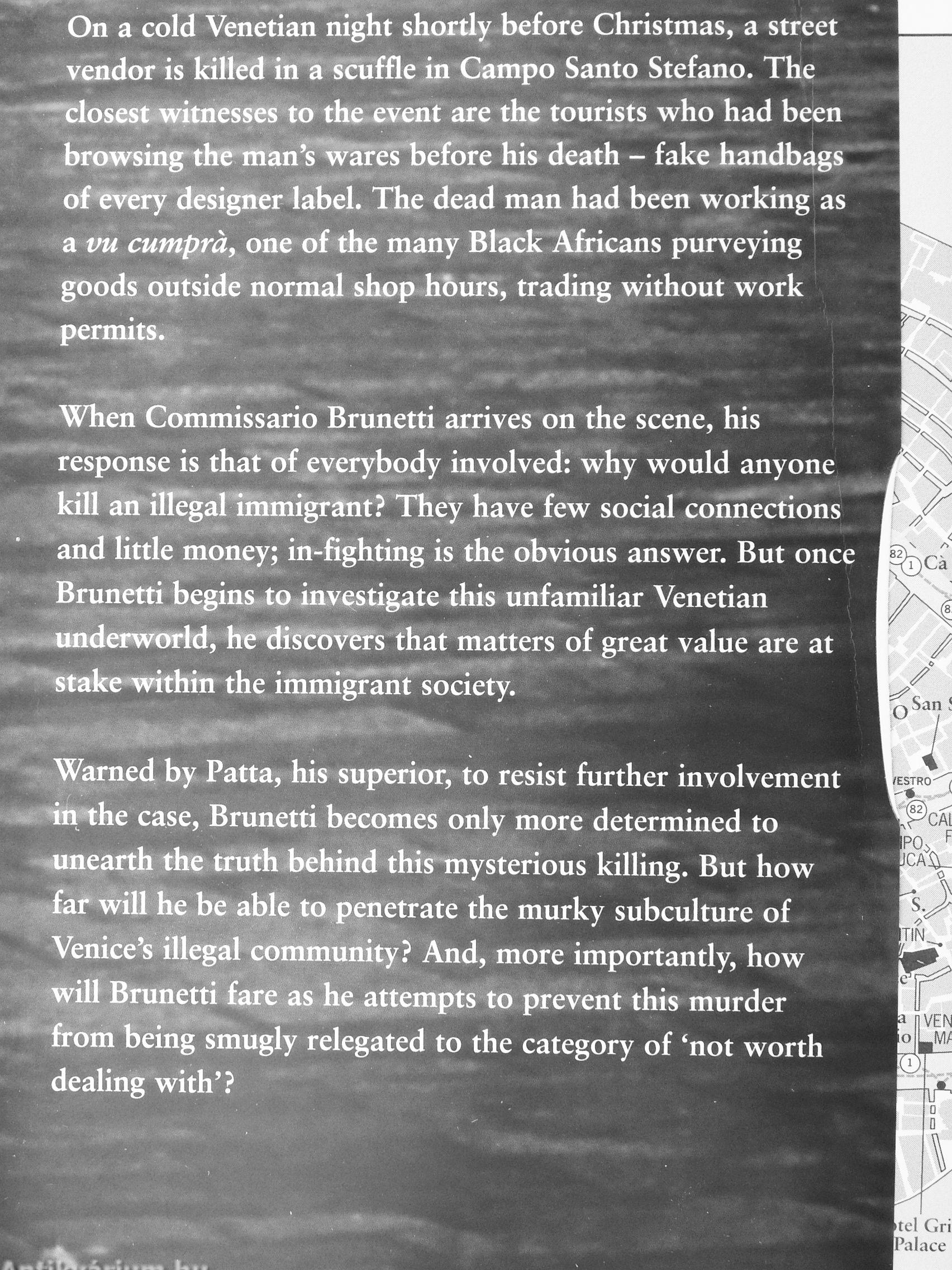 When Commissario Brunetti arrives on the scene, his response is that of everybody involved: why would anyone^ kill an illegal immigrant? They have few social connections and little money; in-fighting is the obvious answer. But once Brunetti begins to investigate this unfamiliar Venetian underworld, he discovers that matters of great value are at stake within the immigrant society.