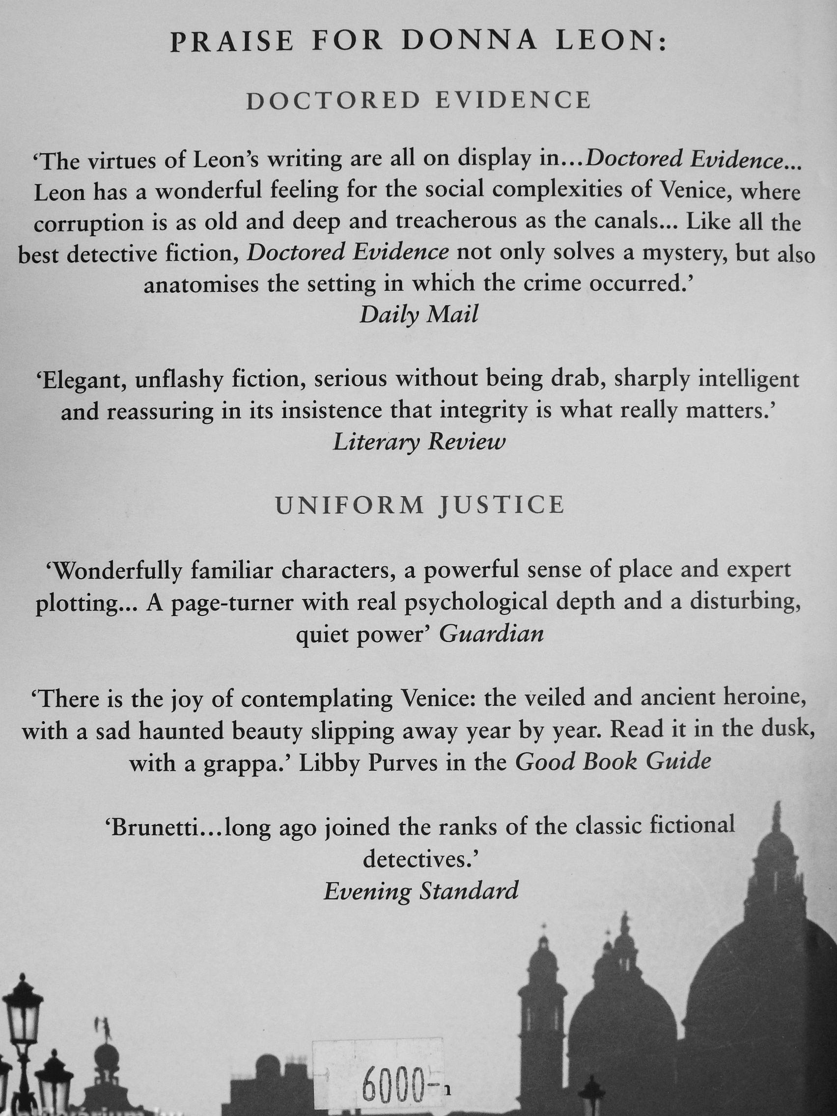 'The virtues of Leon's writing are all on display in Doctored Evidence Leon has a wonderful feeling for the social complexities of Venice, where corruption is as old and deep and treacherous as the canals Like all the best detective fiction, Doctored Evidence not only solves a mystery, but also anatomises the setting in which the crime occurred.' Daily Mail