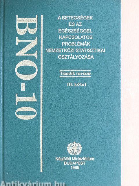 A betűrendes tárgymutató részletessége miatt számos pontatlan, vagy nem kívánatos fogalmat is tartalmaz. Felsorolásuk mégis indokolt, mivel a kórtörténeti leírásokban előfordulhatnak, ezért a kódolást végzőnek tudnia kell, hogy hová osztályozza azokat. Mindenesetre ezek számát a BNO-9 II. kötetéhez (tárgymutatójához) képest csökkentettük.