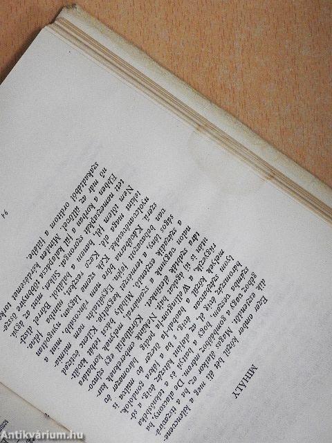 A védőborító szakadozott, hiányos, kopott és foltos. Néhány lap foltos. Kettő lap vágáshibás.
