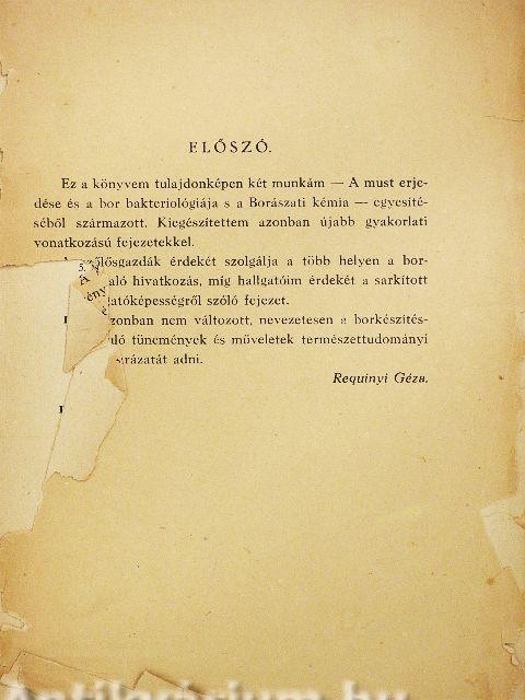 Ez a könyvem tulajdonképen két munkám - A must erjedése és a bor bakteriológiája s a Borászati kémia - egyesítéséből származott. Kiegészítettem azonban újabb gyakorlati vonatkozású fejezetekkel.