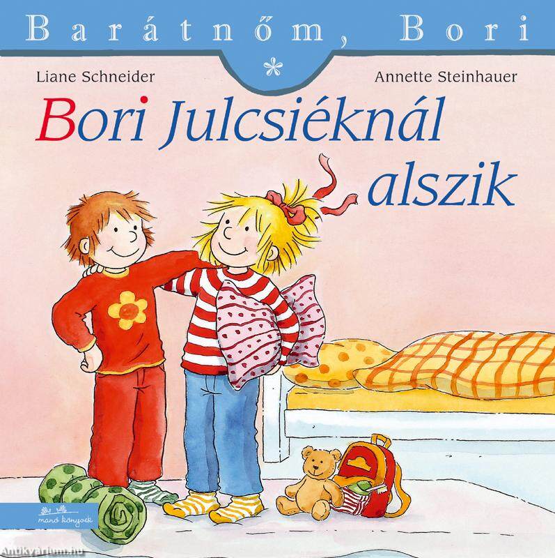 Bori a hátizsákjába pizsamát, papucsot, fogkefét pakol, na meg Teddyt, a mackóját. A kislány most először alszik a barátnőjénél. Julcsiéknál kicsit olyan, mint otthon, de mégis minden annyira más. Vajon el tud aludni Bori Anya jó éj puszija és Apa esti meséje nélkül?
