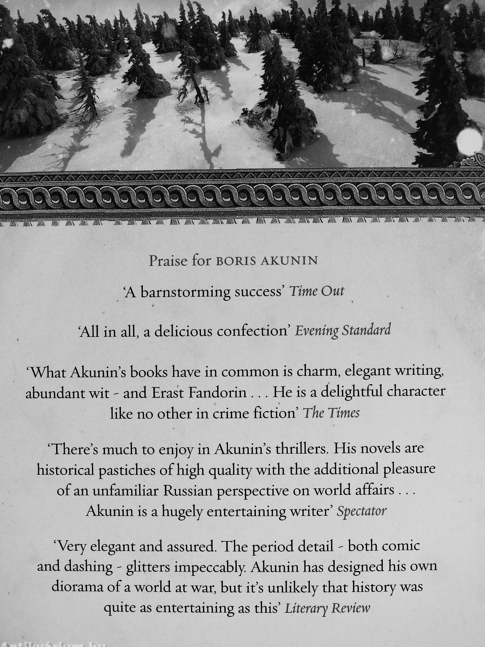 'Very elegant and assured. The period detail - both comic and dashing - glitters impeccably Akunin has designed his own diorama of a world at war, but it's unlikely that history was quite as entertaining as this' Literary Review