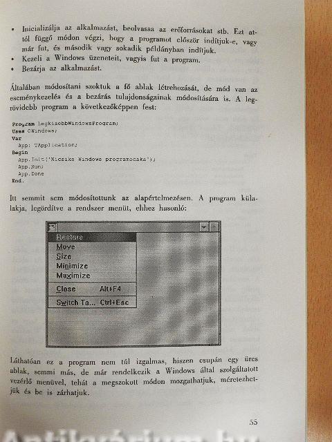 | Borland stílusú vezérlők hasznűálata | 142 |