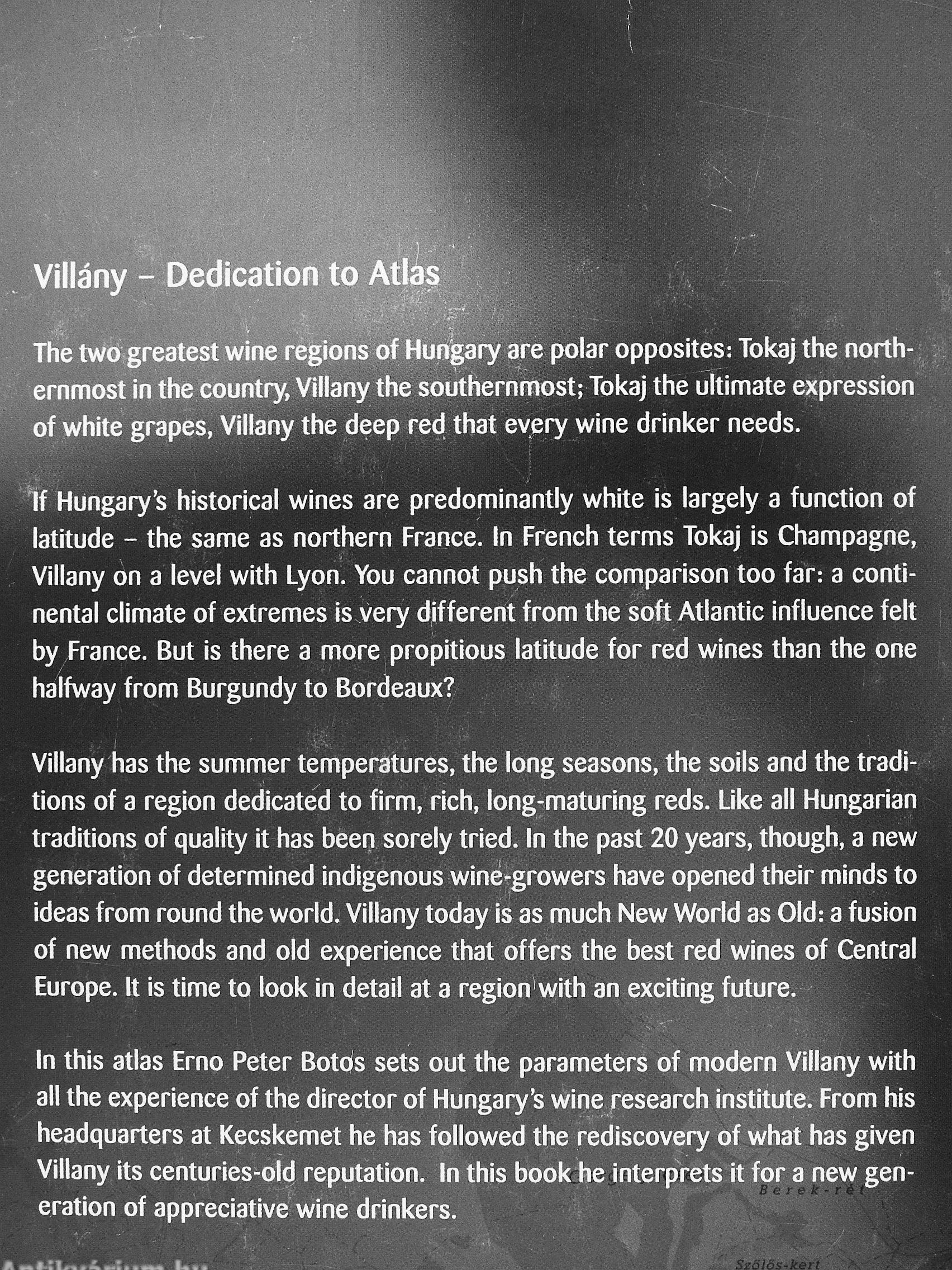 In this atlas Erno Peter Botqls sets out the parameters of modern Villany with all the experience of the director of Hungary's wine research institute. From his headquarters at Kecskemet he has followed the rediscovery of what has given Villany its centuries-old reputation, in this book he interprets it for a new generation of appreciative wine drinkers.
