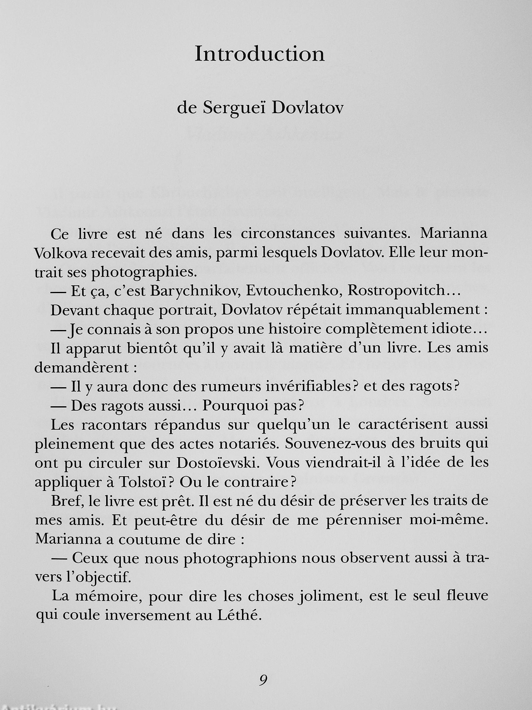 « Ce livre est né dans les circonstances suivantes. Marianna Volkova recevait des amis, parmi lesquels Dovlatov. Elle leur montrait ses photographies.