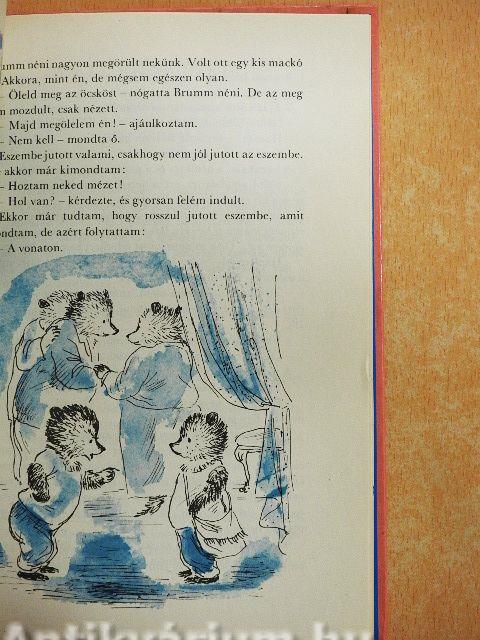 | Hatodik fejezet, amelyben megérkezünk, a vonat, a papám és én. Elmondom, ki az a Pulykapipi, meg hogy hol van méz, amit hoztam, és sok mindent, ami Brumm bácsiéknál történt. | 35 |