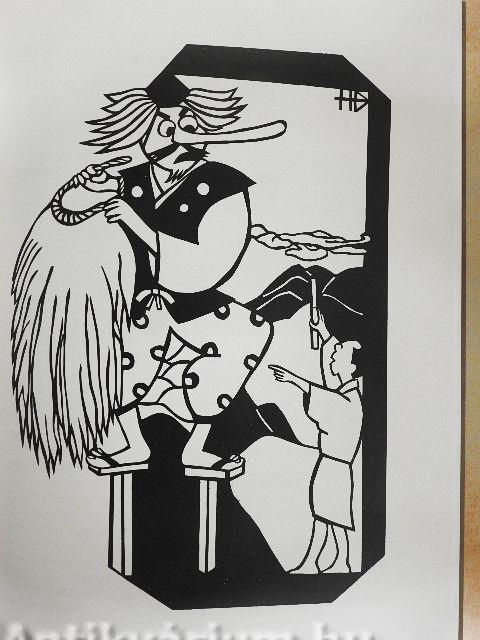 | Megjegyzés: | A könyvet egy jellegzetes japán képzőművészeti műfaj, a kiri-e ("vágott kép") technikájával alkotott, papírból kivágott képek díszítik. |