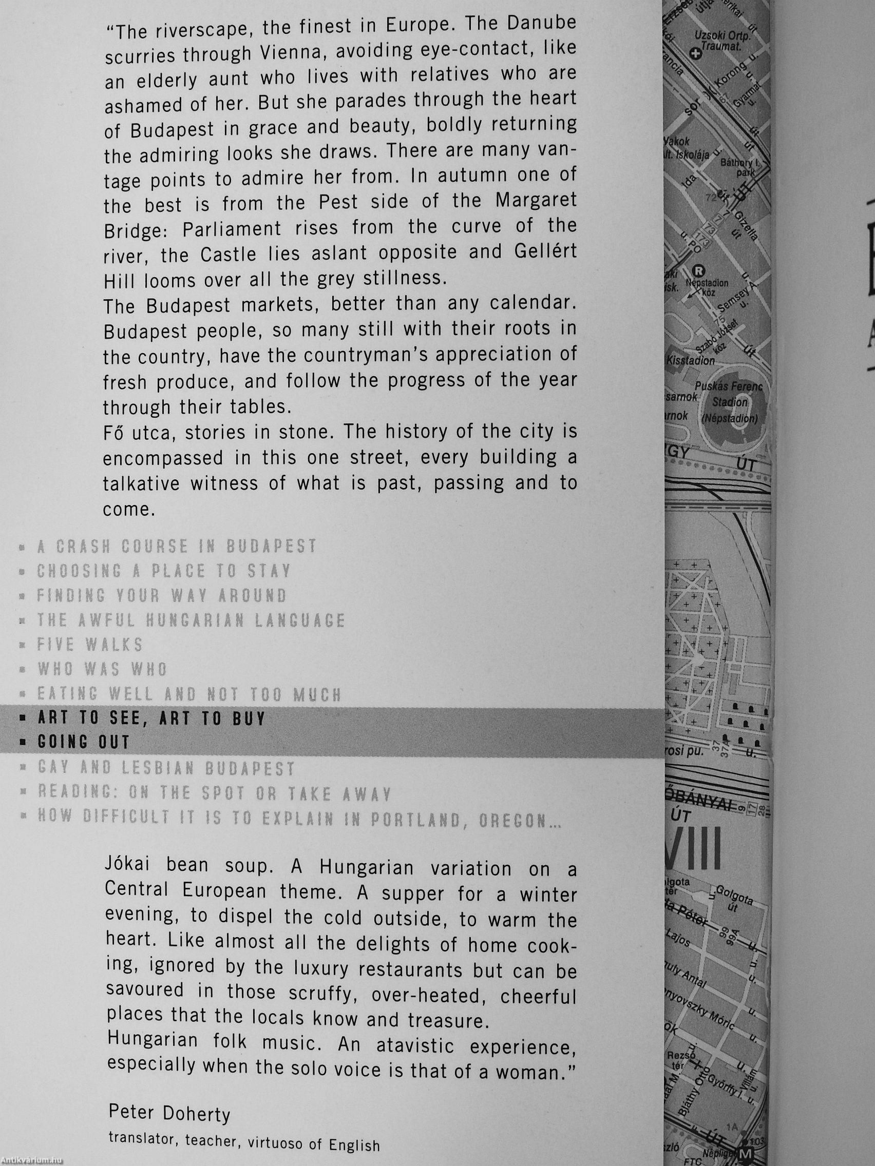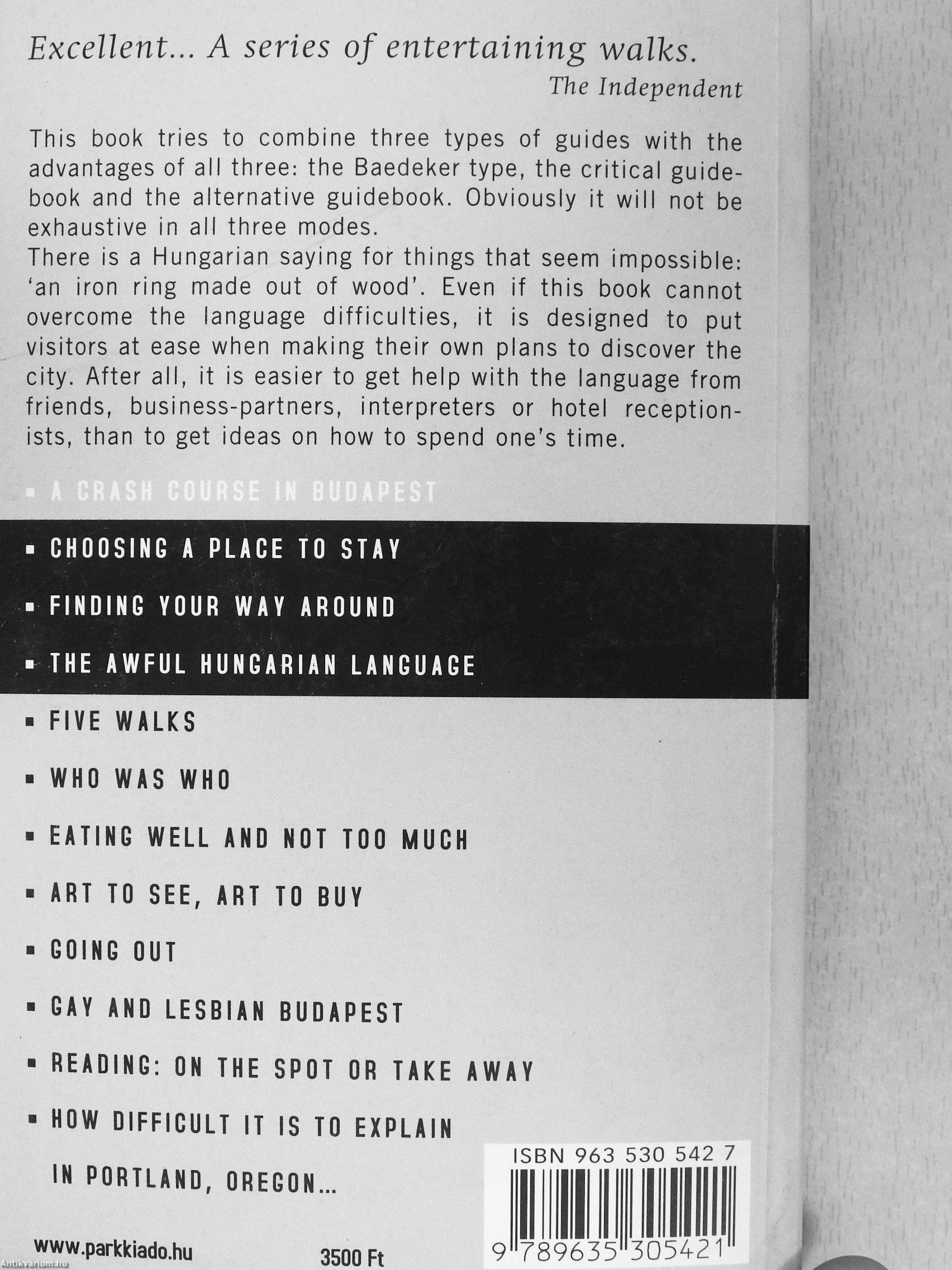 There is a Hungarian saying for things that seem impossible: 'an iron ring made out of wood'. Even if this book cannot overcome the language difficulties, it is designed to put visitors at ease when making their own plans to discover the city. After all, it is easier to get help with the language from friends, business-partners, interpreters or hotel receptionists, than to get ideas on how to spend one's time.