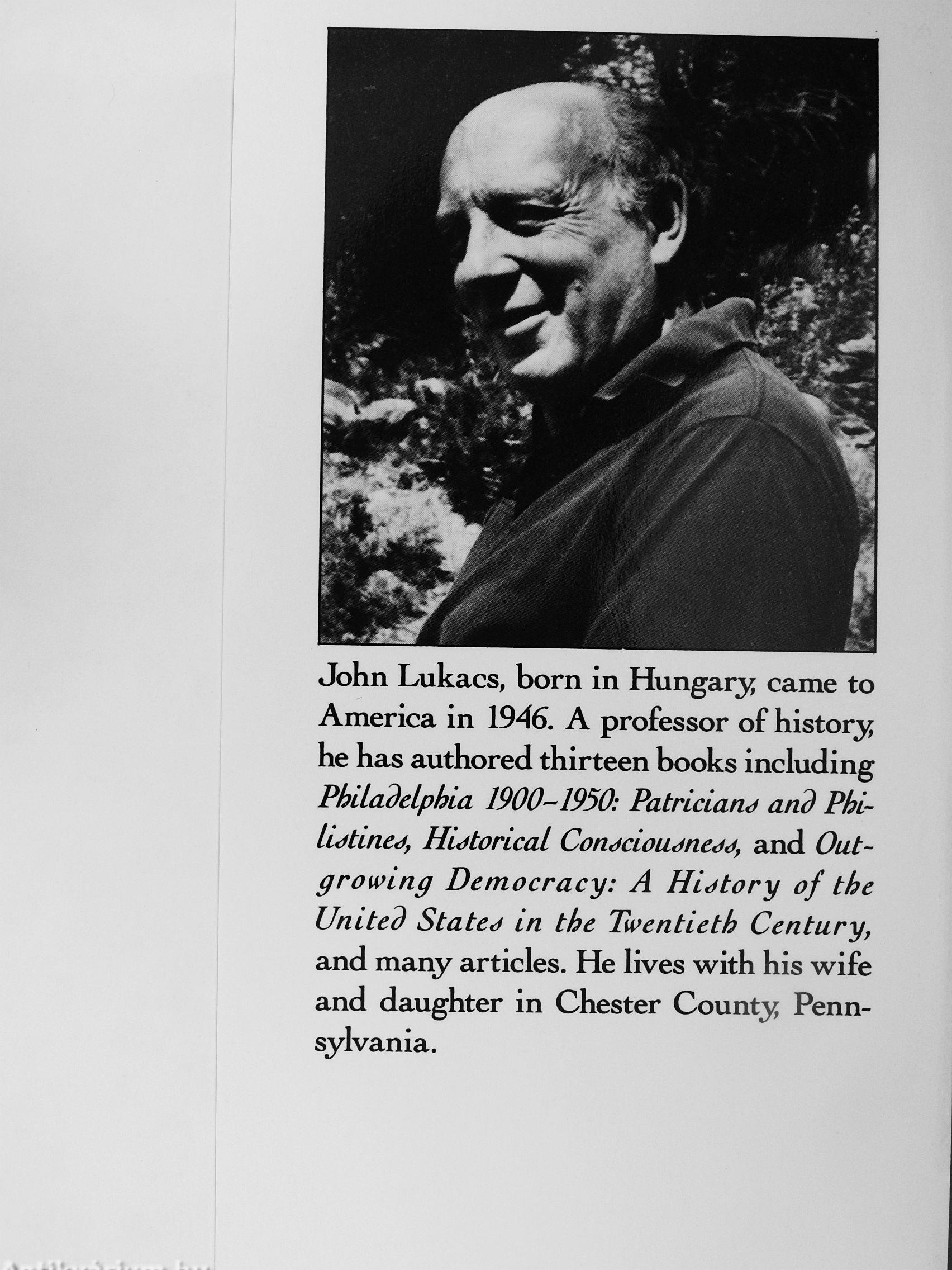 John Lukacs, born in Hungar^i came to America in 1946. A professor of histor^i he has authored thirteen books including Philadelphia MO-BSO: Patricians and Philistine*), Historical Consciousness, and Outgrowing Democracy: A History of the United States in the Twentieth Century, and many articles. He lives with his wife and daughter in Chester County Pennsylvania.
