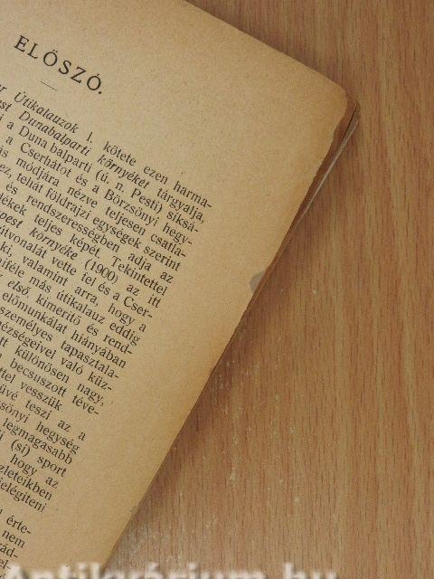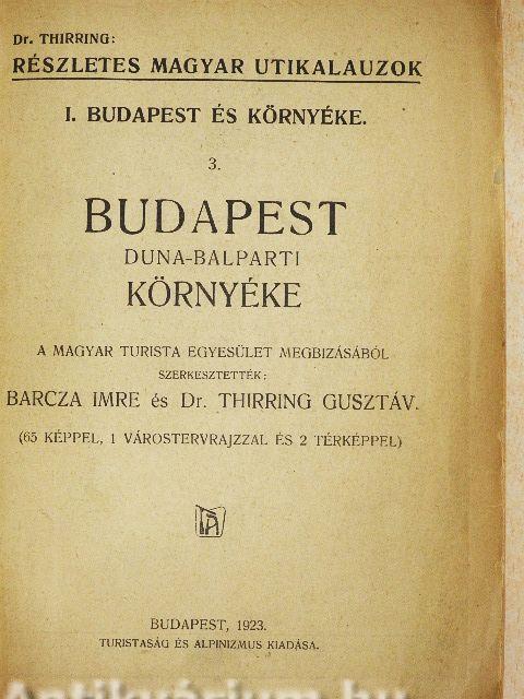 A Részletes Magyar Útikalauzok I. kötete ezen harmadik füzettel, mely Budapest Dunabalparti környékét tárgyalja, lezáródik. Ez a füzet felöleli a Duna balparti (ú. n. Pesti) síkságot, a Gödöllői dombvidéket, a Cserhátot és a Börzsönyi hegységet. Beosztásra és a tárgyalás módjára nézve teljesen csatlakozik a Dunajobbparti 2. füzethez, tehát földrajzi egységek szerint haladva szerves összefüggésben és rendszerességben adja az egyes hegycsoportok vagy sík vidékek teljes képét. Tekintettel arra, hogy a Thirring-féle Budapest környéke (1900) az itt tárgyalt vidéknek csak néhány főbb útvonalát vette fel és a Cserhátra egyáltalában nem terjeszkedett ki, valamint arra, hogy a Dunabalparti környéket tárgyaló semmiféle más útikalauz eddig nem jelent meg: ez a munka e vidéknek első, kimerítő és rendszeres útikalauza, mely minden idevágó előmunkálat hiányában teljesen önállóan, csupán munkatársainak személyes tapasztalataira támaszkodva, jött létre. A kezdet nehézségeivel való küzdelem, mely a mai nehéz viszonyok mellett különösen nagy, szolgáljon ezért mentségül a munkába netán becsúszott tévedésekért, melyeknek szives kiigazítását köszönettel vesszük.
