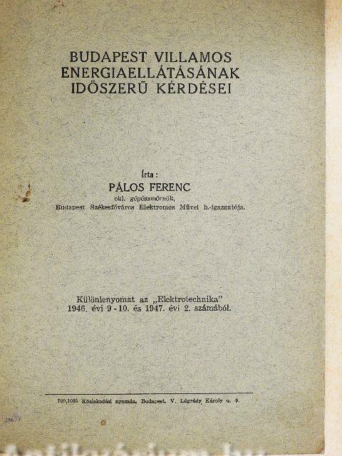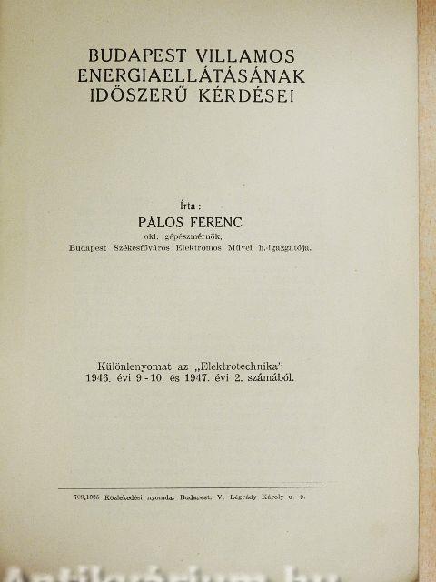 | Megjegyzés: | Különlenyomat az "Elektrotechnika" 1946. évi 9-10. és 1947. évi 2. számából. Írta: Pálos Ferenc okl. gépészmérnök, Budapest Székesfőváros Elektromos Művei h.-igazgatója. Fekete-fehér ábrákkal. |