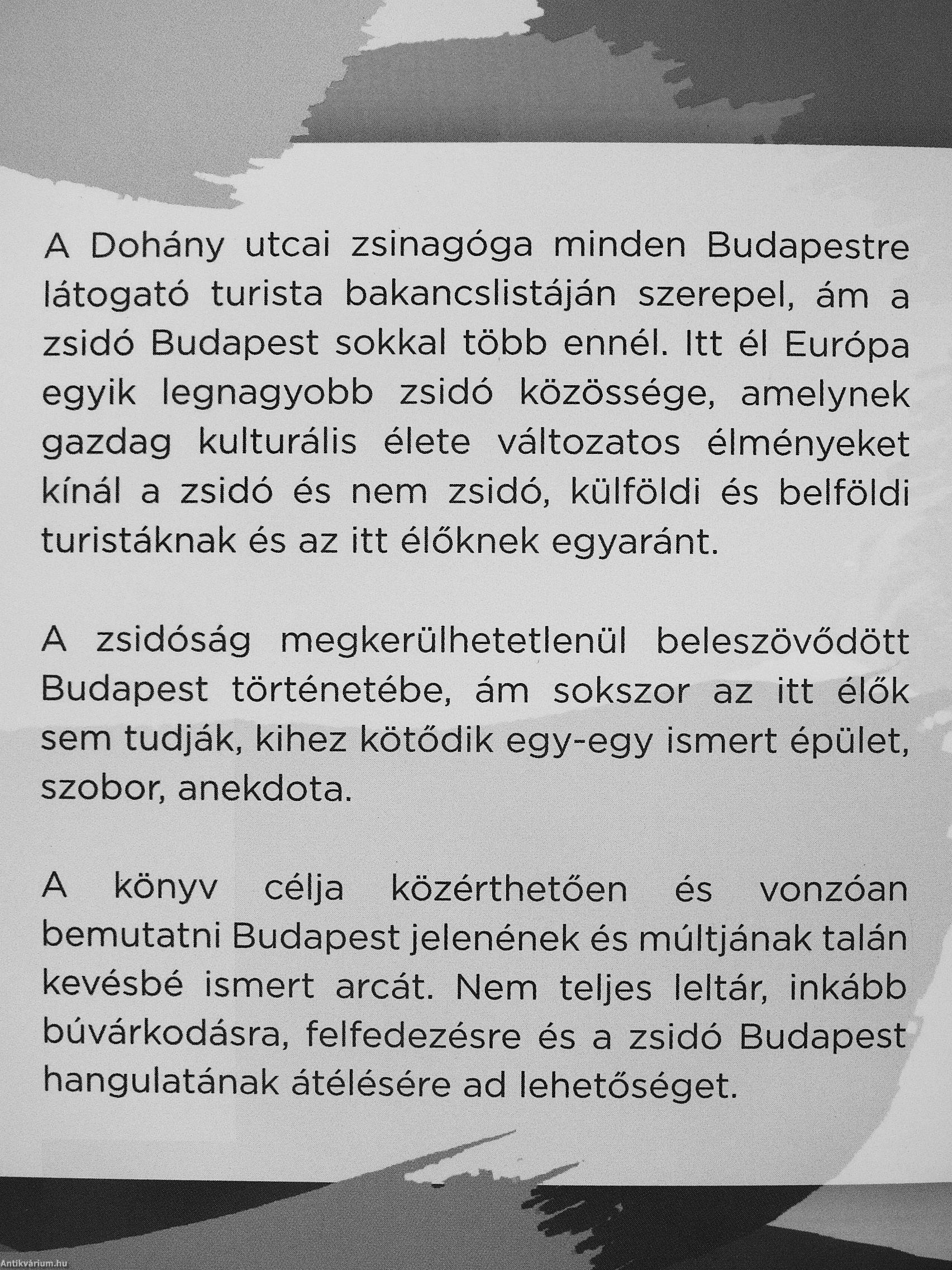 A Dohány utcai zsinagóga minden Budapestre látogató turista bakancsiistáján szerepel, ám a zsidó Budapest sokkal több ennél. Itt él Európa egyik legnagyobb zsidó közössége, amelynek gazdag kulturális élete változatos élményeket kínál a zsidó és nem zsidó, külföldi és belföldi turistáknak és az itt élőknek egyaránt.