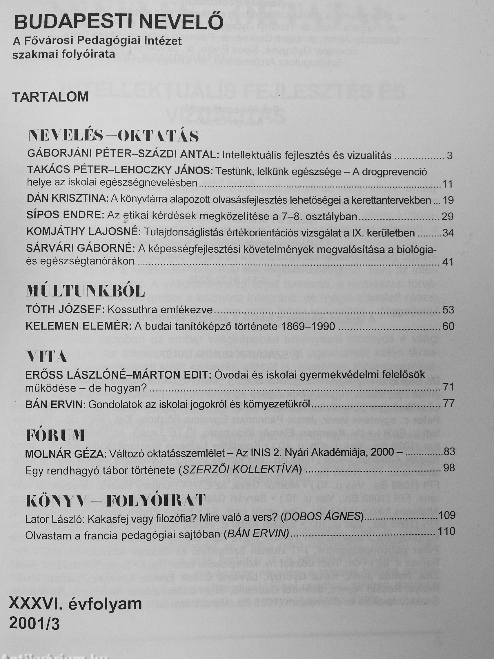 A Fővárosi Pedagógiai Intézet folyóirata - XXXVI. évfolyam 2001/3