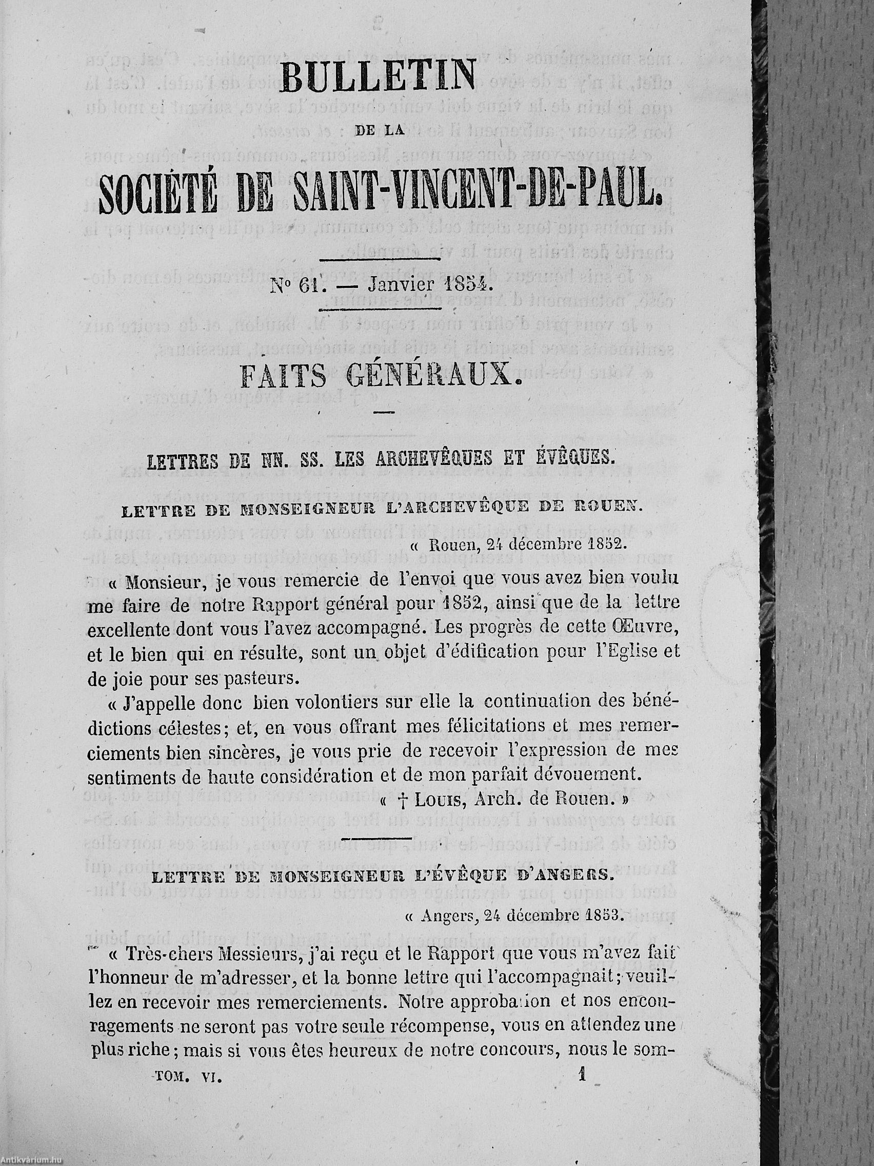 | Sorozatcím: | Bulletin de la Société de Saint-Vincent-de-Paul |