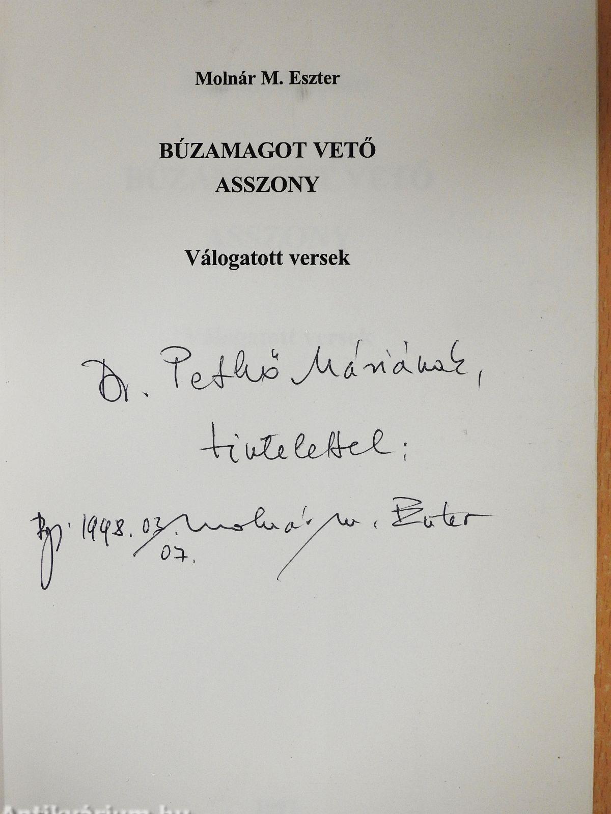 Kötetünk, a „Búzamagot vető asszony", ezt a lángoló lelkű, hűséges, drámai módon élő, érett asszonyt állítja elénk, aki verseiben odaadó szerelemmel