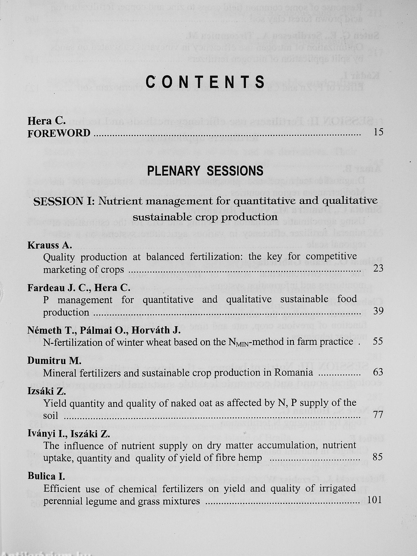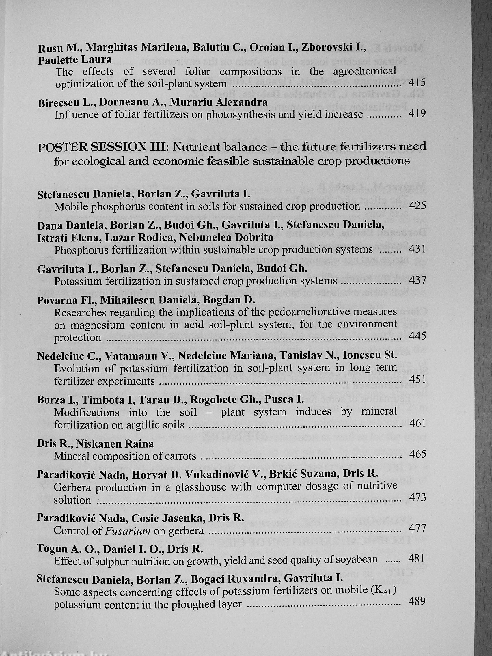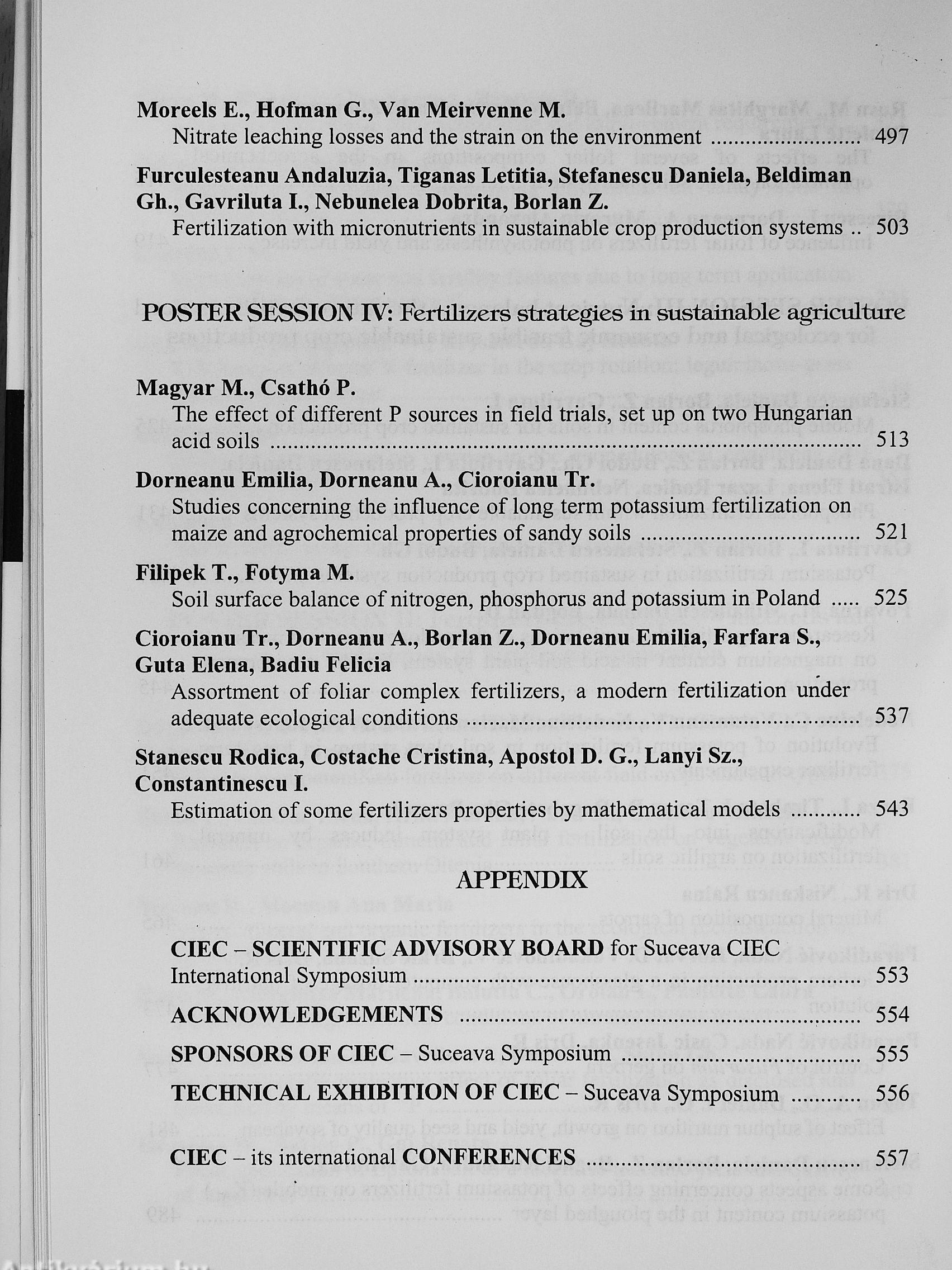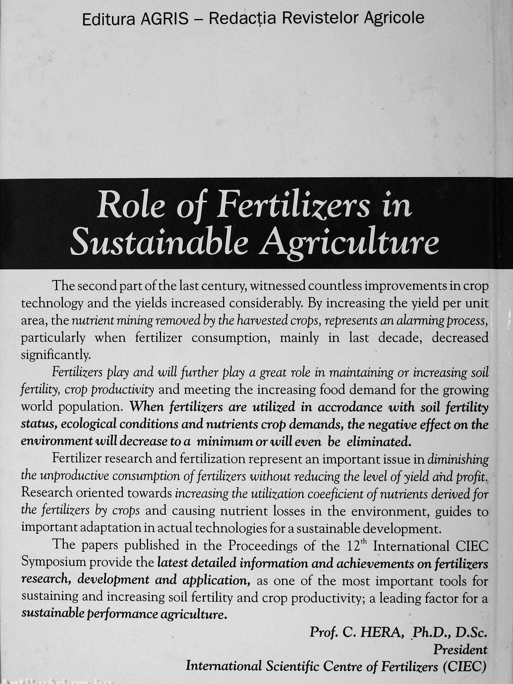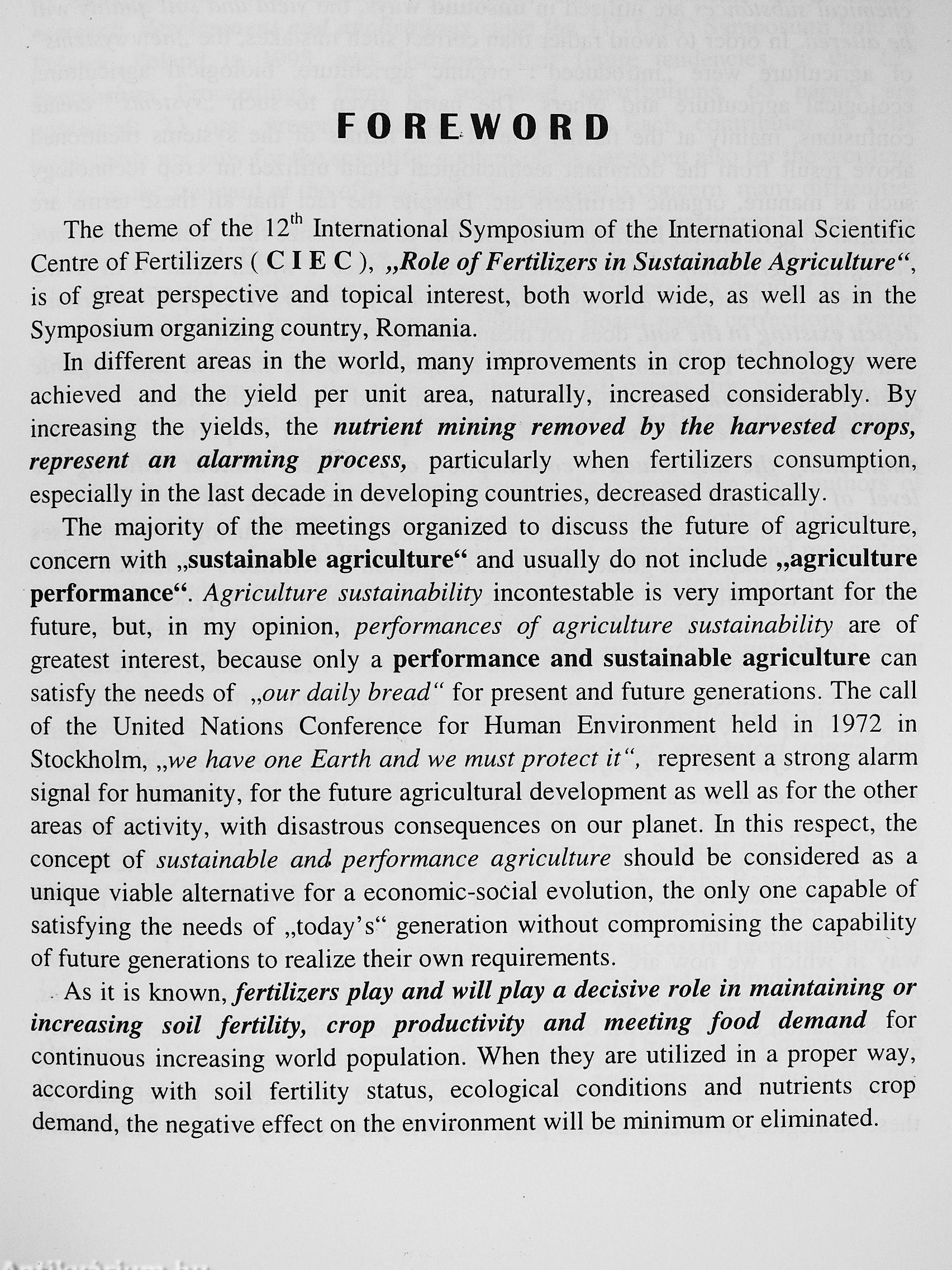 The papers published in the Proceedings of the 12* International CIEC Symposium provide the latest detailed information and achievements on fertilizers research, development and application, as one of the most important tools for sustaining and increasing soil fertility and crop productivity; a leading factor for a sustainable performance agriculture.