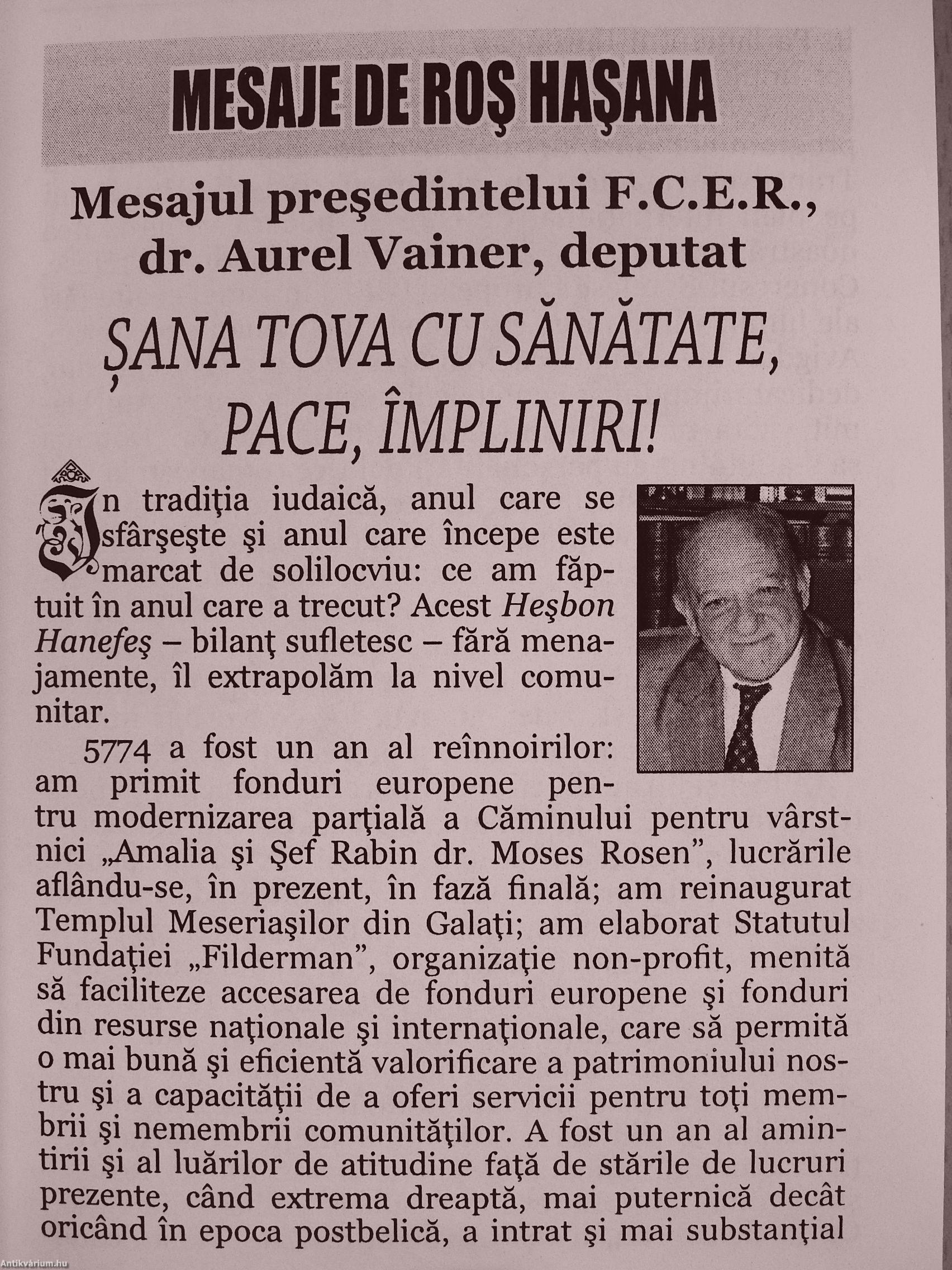 | Kiadó: | Federatia Comunitatilor Evreiesti din Romania Cultul Mozaic |