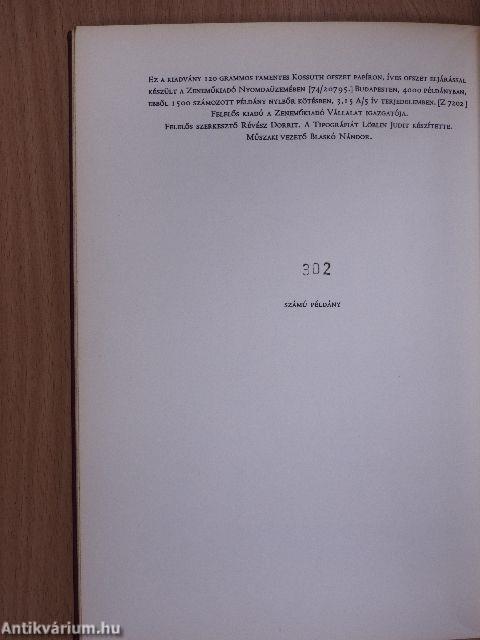 Megjegyzés: Fekete-fehér illusztrációkkal. Sorszámozott kiadás.