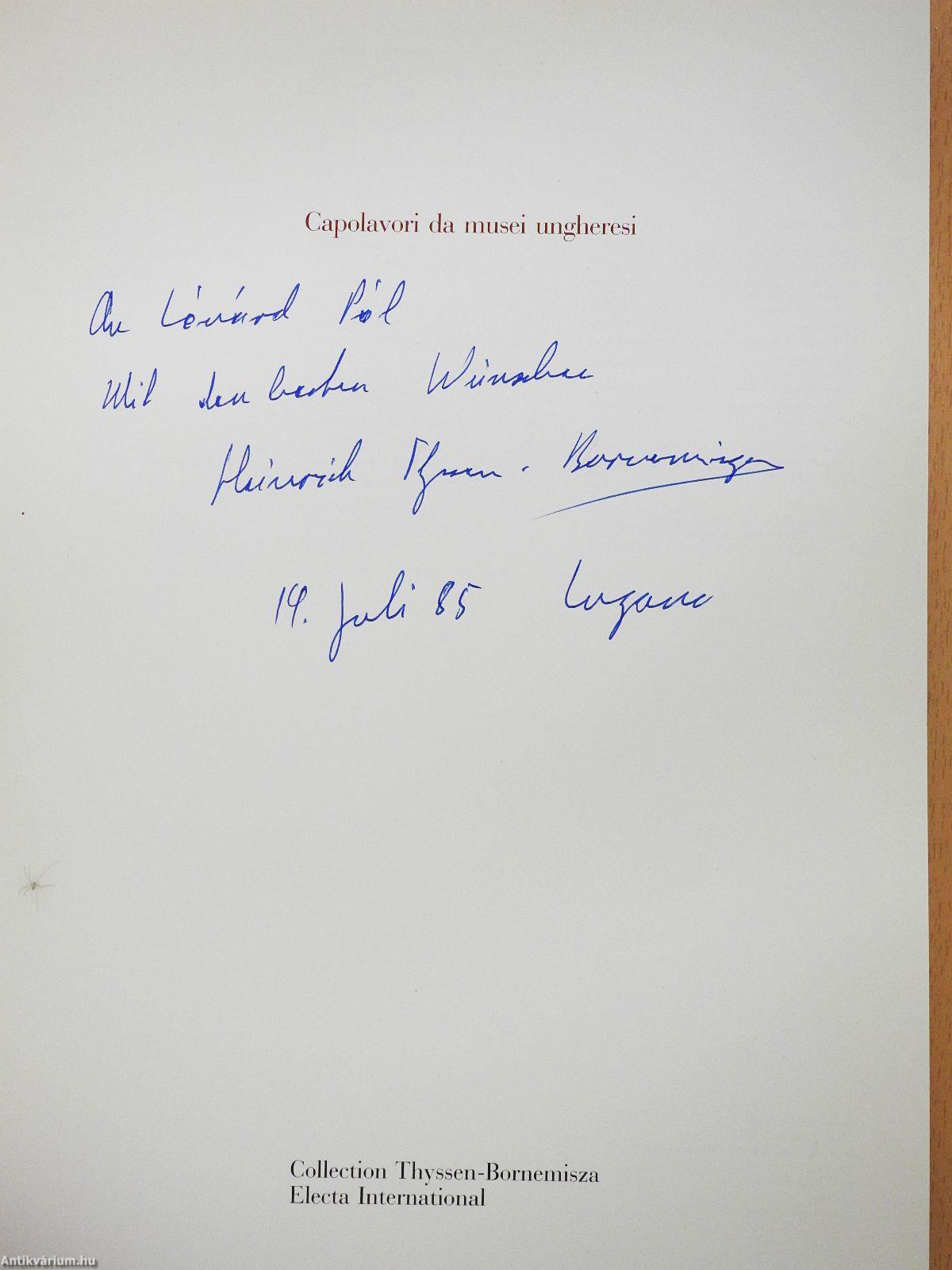 | Megjegyzés: | Hans Heinrich Thyssen-Bornemisza műgyűjtő, a Thyssen-Bornemisza Múzeum alapítója által dedikált példány. Kiállítási katalógus. Színes reprodukciókkal. További kapcsolódó személyek a könyvben. |
