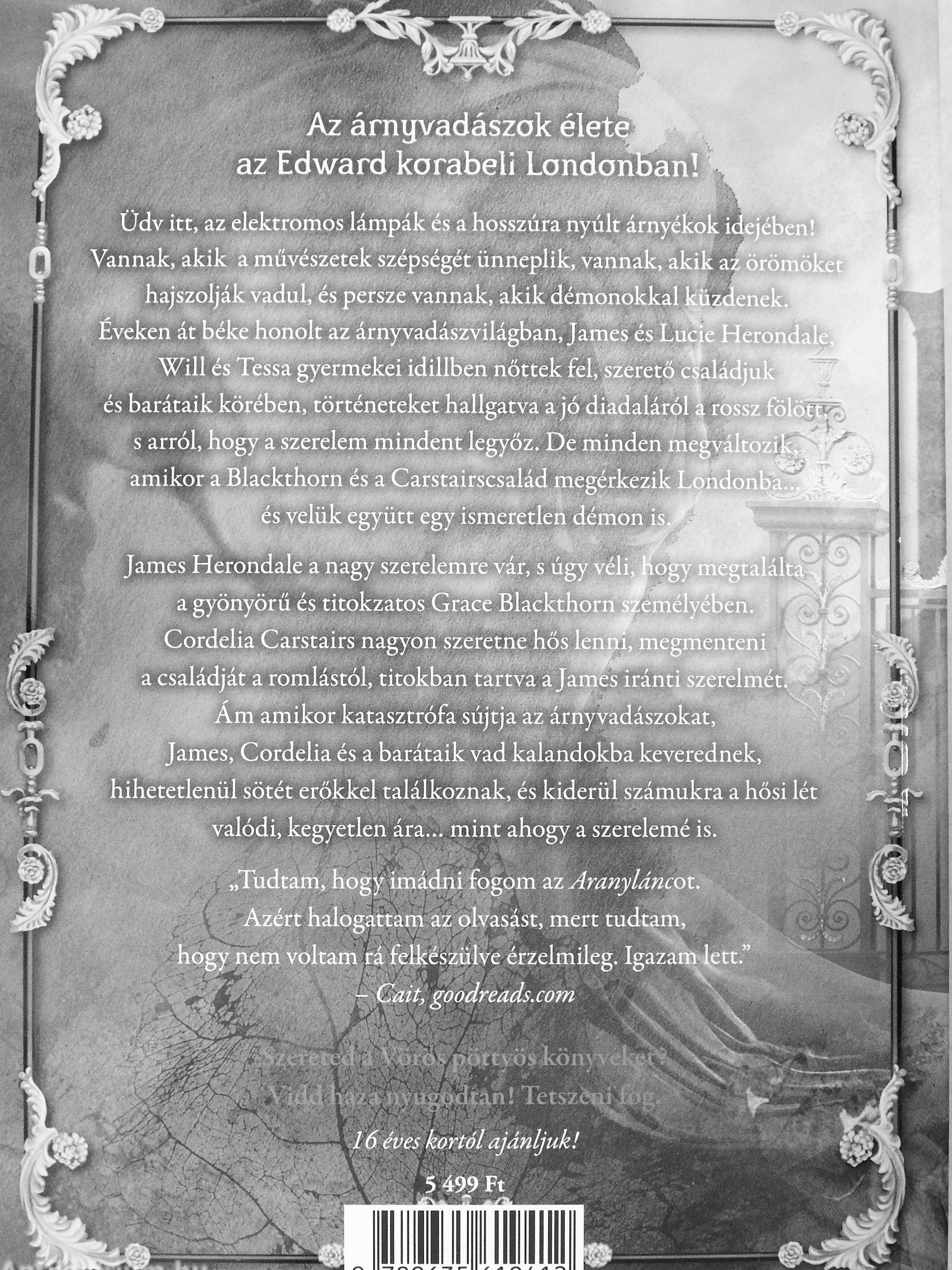 ^Vannak,' akik a művészetek szépségét ünneplik,Vannak, a^ aí^^rómökct g hajszolják vadul, es persze vannak, akik démonokkal kq^den^k-^^?^ ^Eveken át béke nonolt az árnyvadászvilágbah, James és Lüclc HeösiWa^™ ¦ ^^íV Will és Tessa gyermekei idillben nőttek fel, szerető családsik I
