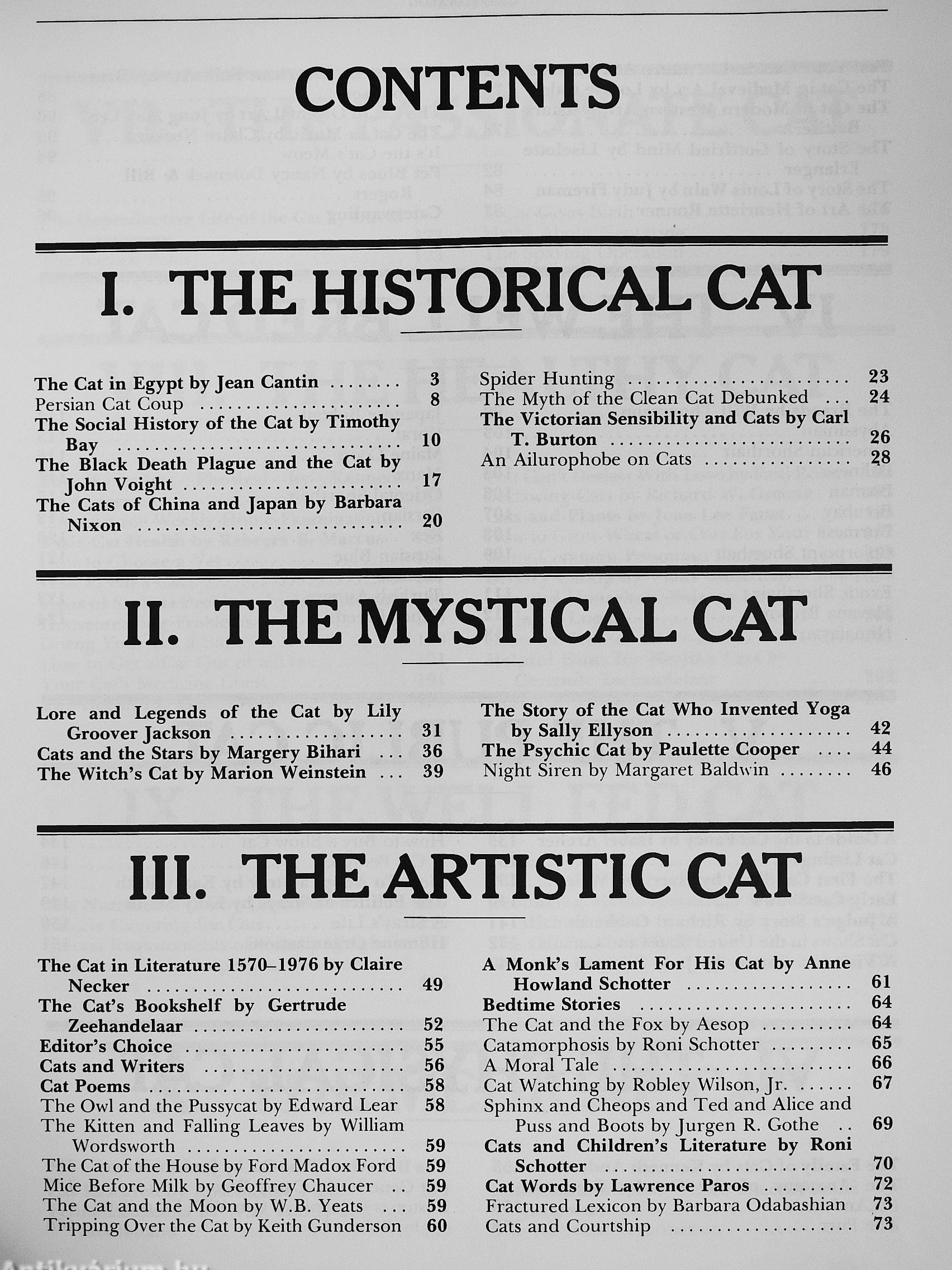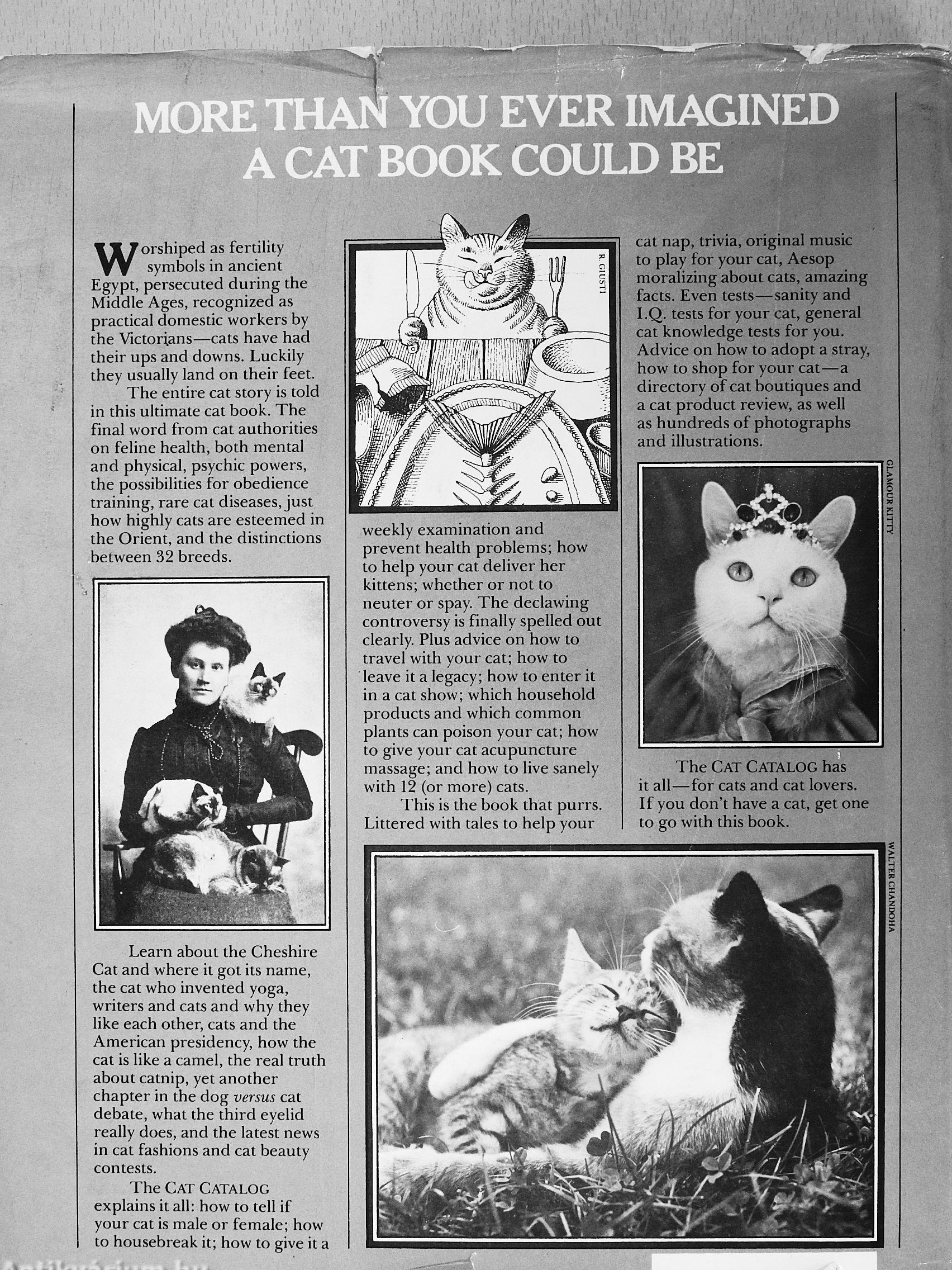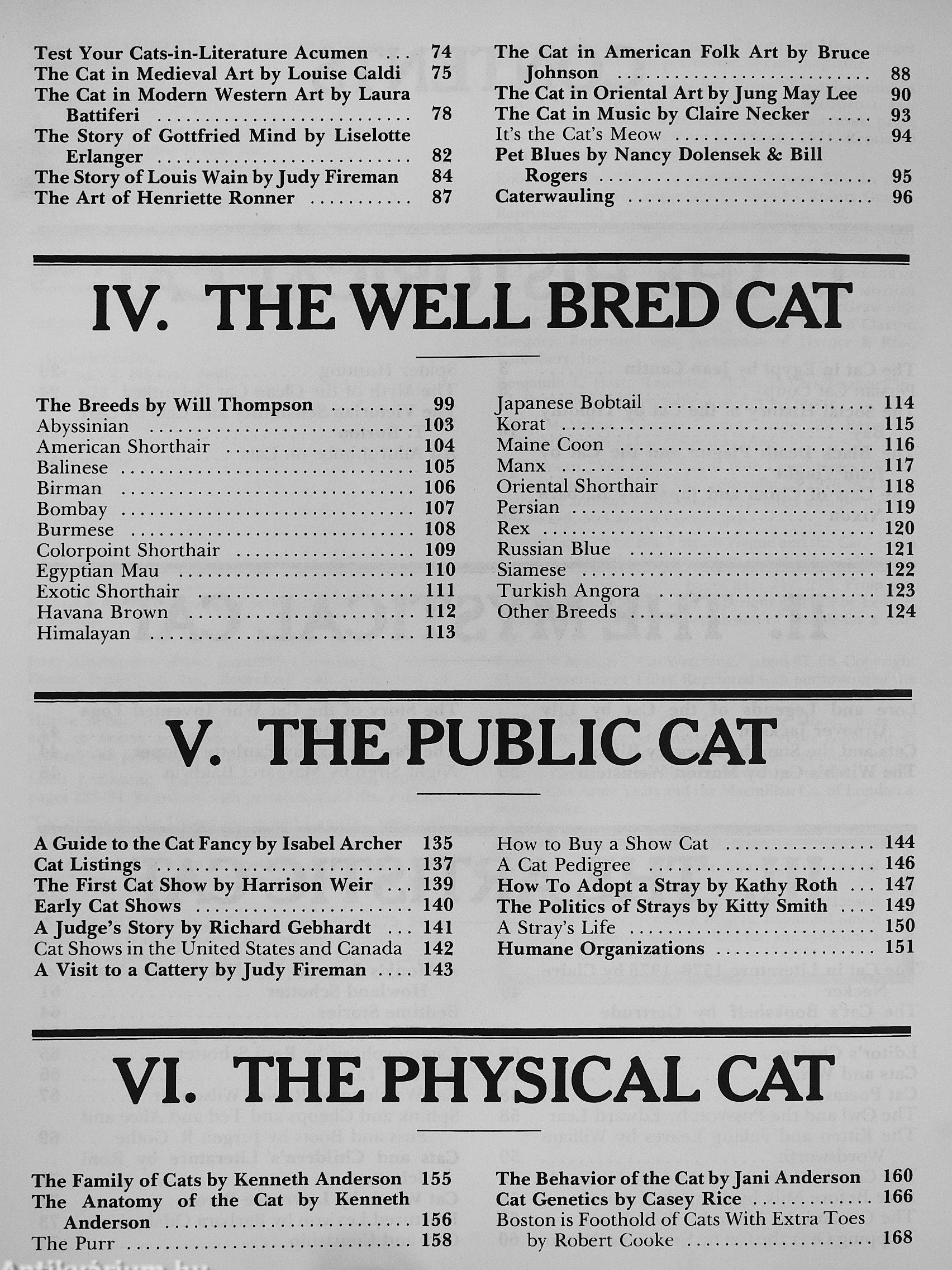 Learn about the Cheshire Cat and where it got its name, the cat who invented yoga, writers and cats and why they like each other, cats and the American presidency, how the cat is like a camel, the real truth about catnip, yet another chapter in the dog versus cat debate, what the third eyelid really does, and the latest news in cat fashions and cat beauty contests.