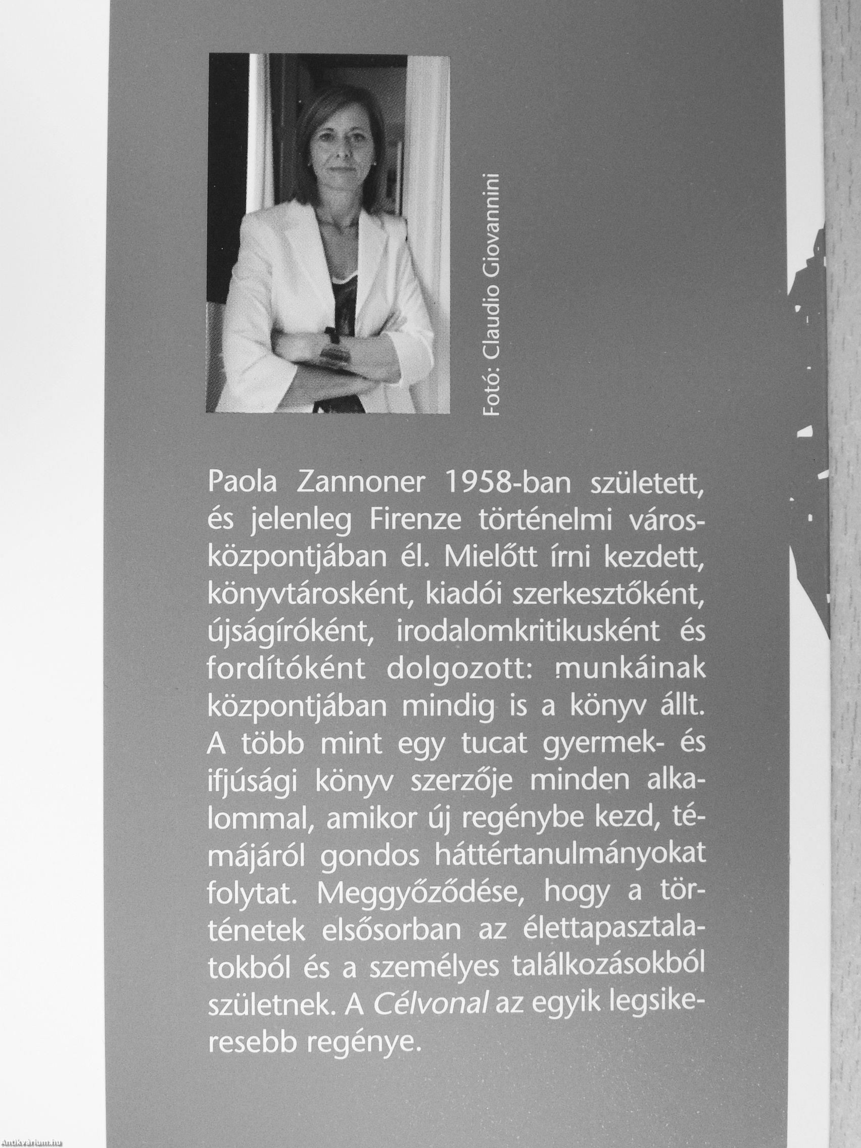 Paola Zannoner 1958-ban született, és jelenleg Firenze történelmi városközpontjában él. Mielőtt írni kezdett, könyvtárosként, kiadói szerkesztőként, újságíróként, irodalomkritikusként és fordítóként dolgozott: munkáinak központjában mindig is a könyv állt. A több mint egy tucat gyermek- és ifjúsági könyv szerzője minden alkalommal, amikor új regénybe kezd, témájáról gondos háttértanulmányokat folytat. Meggyőződése, hogy a történetek elsősorban az élettapasztalatokból és a személyes találkozásokból születnek. A Célvonal az egyik legsikeresebb reqénye.