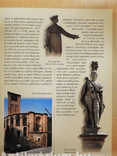 "Az immár háromezer éves Padova két időszakra oszló történetét a város eltérő neve is egyértelműen jelzi: Patavium - Padova. A legendás hírű Patavium szorgos gazdálkodók...