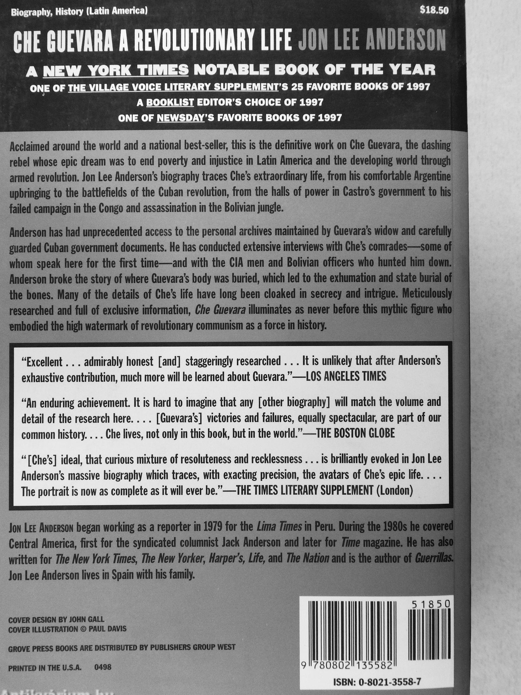 Acclaimed around the world and a national best-seller, this is the definitive work on Che Guevara, the dashing rebel whose epic dream was to end poverty and injustice in Latin America and the developing wortd through armed revolution. Jon Lee Anderson's biography traces Che's extraordinary life, from his comfortable Argentine upbringing to the battlefields of the Cuban revolution, from the halls of power in Castro's government to his failed campaign in the Congo and assassination in the Bolivian jungle.
