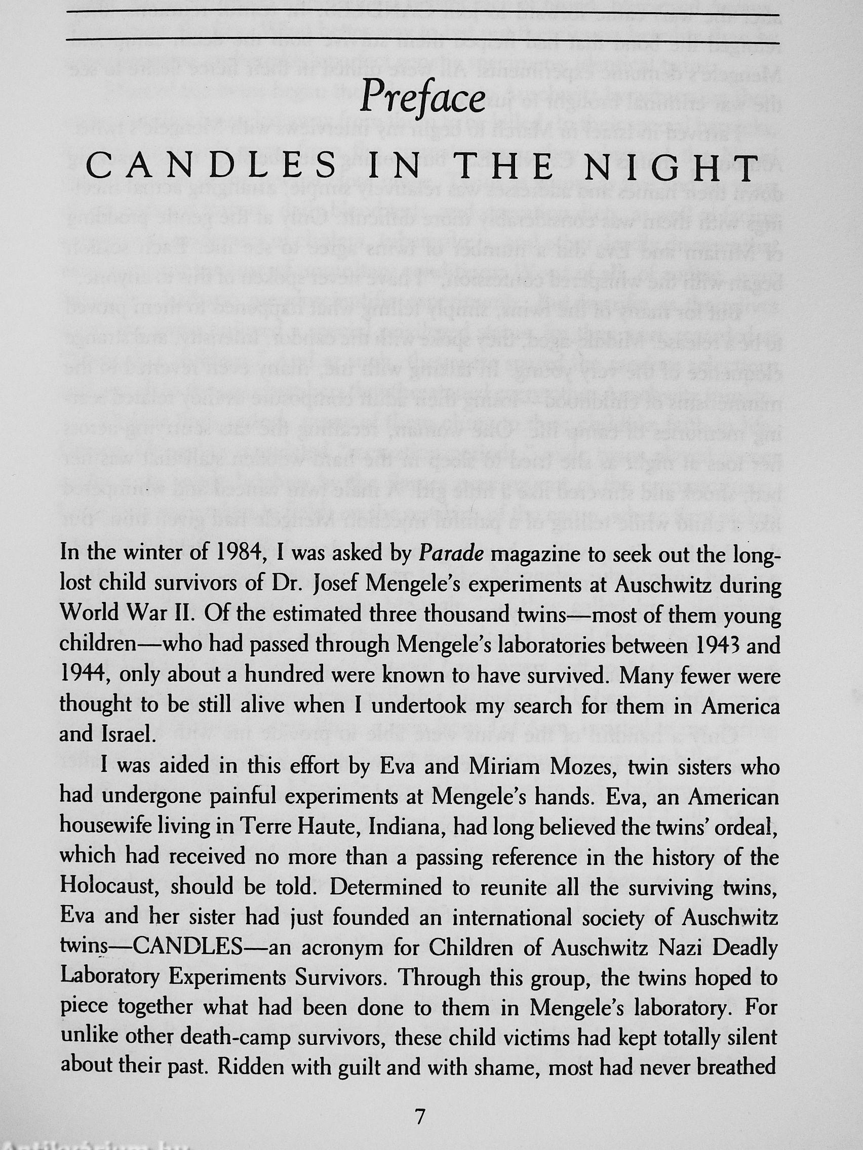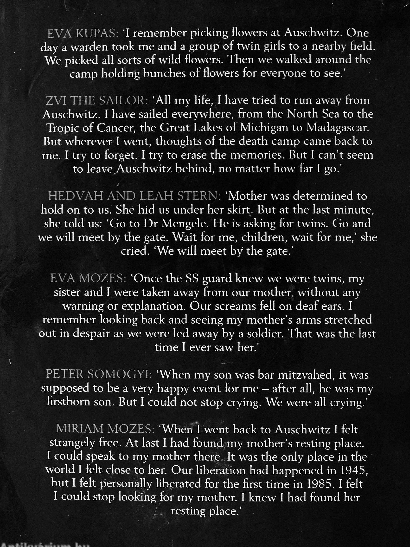 But the heart of this compelling book centres on the years following the Liberation. After the war had destroyed their lives we follow the survivors as they struggle to rebuild their future as best they can. Some are tormented by what twin siblings who didn't survive the experiments experienced; others bear a terrible residual guilt for having been born a twin, which conferred upon them a privileged status that assured their survival. And all of them are condemned to live with a terrible double-edged sword: the hell they suffered because of Mengele, and the life they owe him as 'his' children.