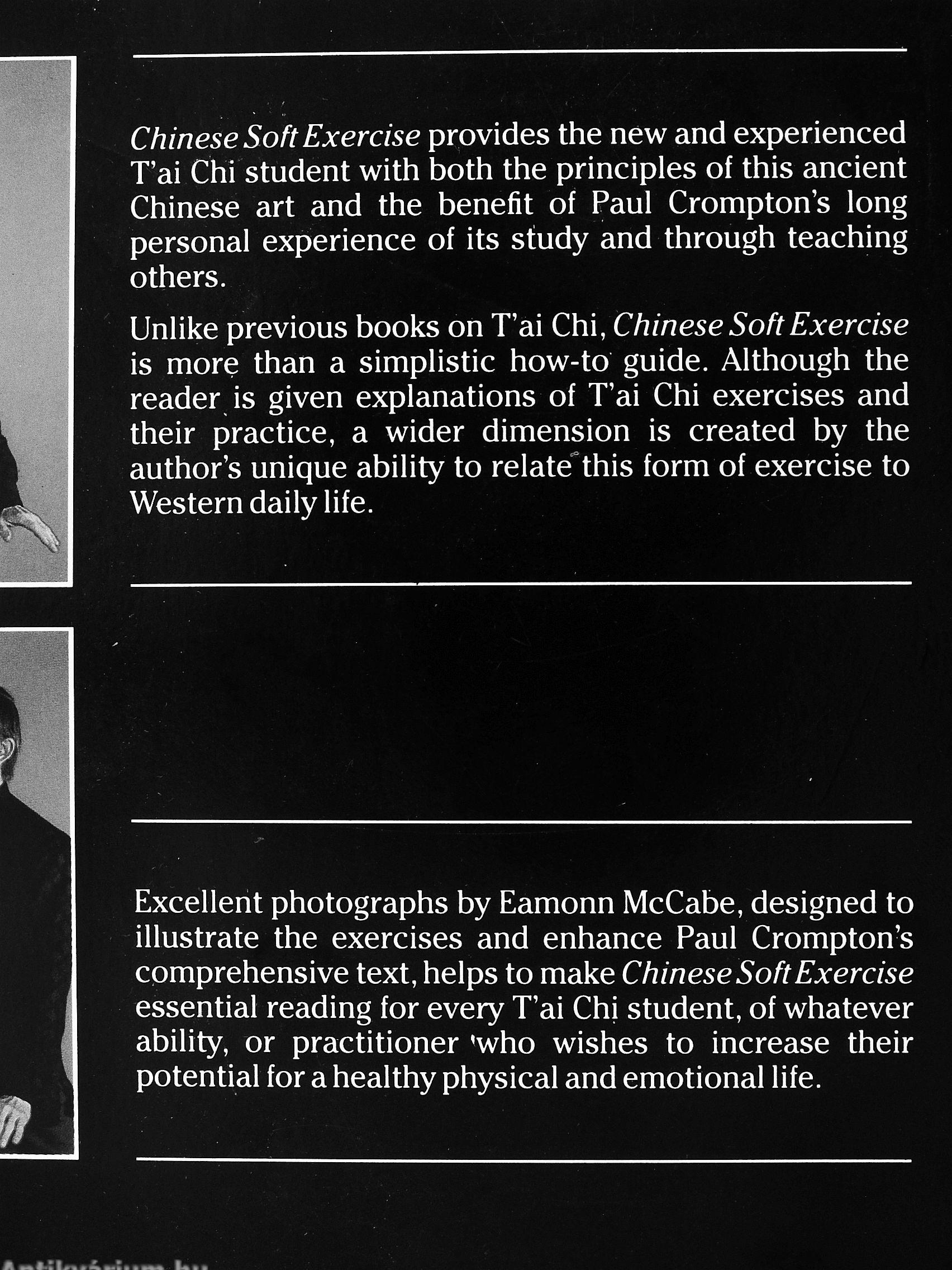 Excellent photographs by Eamonn McCabe, designed to illustrate the exercises and enhance Paul Crompton's comprehensive text, helps to make Chinese Soft Exercise essential reading for every T'ai Chi student, of whatever ability, or practitioner 'who wishes to increase their potential for a healthy physical and emotional life.