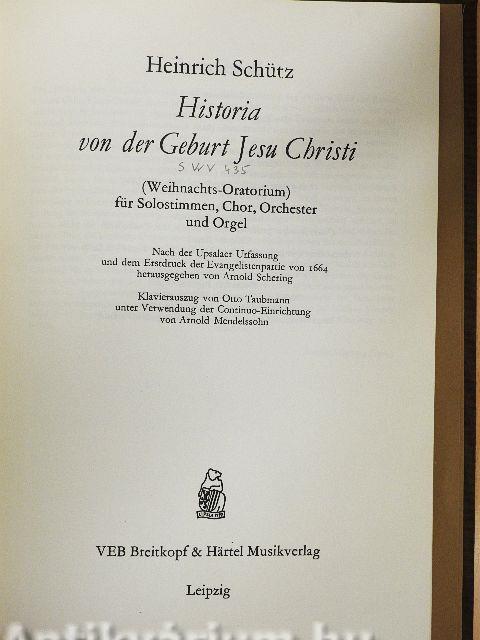 Historia der Geburt Jesu Christi (swv 435, 435a) for soprano, tenor and bass soloists, choir and orchestra/Vocal score (English/German)/Weihnachts-Oratorium für Solostimmen, Chor, Orchester und Orgel