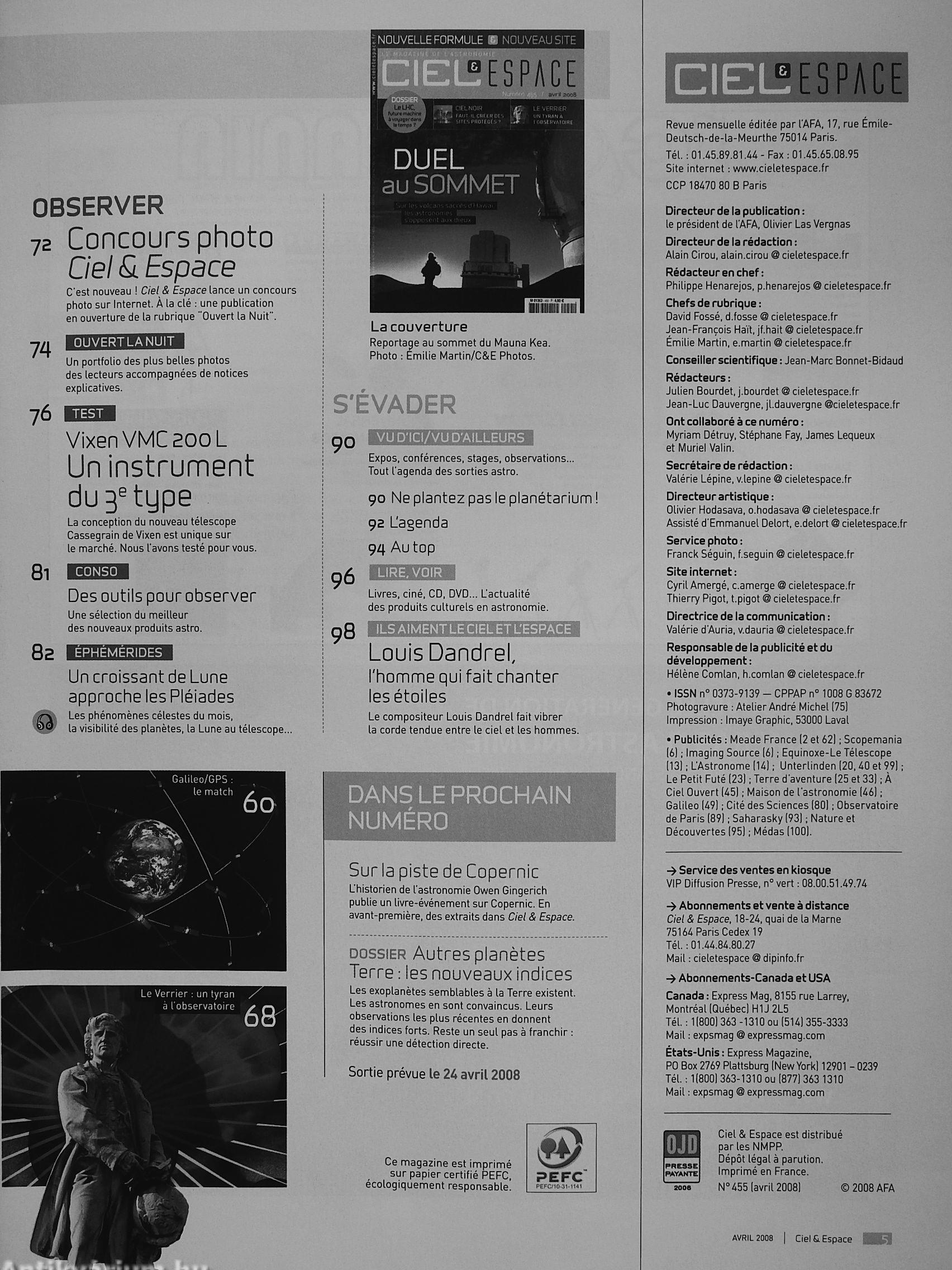 | Sorozatcím: | Ciel & Espace-Le Magazine de l'Astronomie |