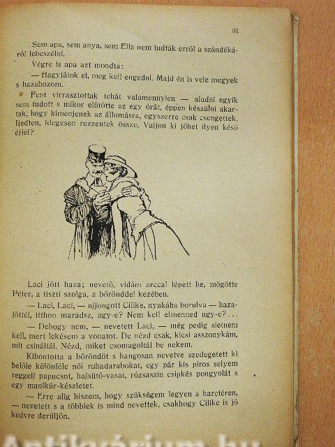 - ez az én uram! - gondolta magában Cilike s ez olyan furcsa volt, ugy jött, hogy nevessen - meg egyben hihetetlen is volt. Hát csakugyan férjhez ment végre, anélkül, hogy valami ujabb baleset miatt el kellett volna ismét halasztani az esküvőt?... megcsipte a karját, hogy meggyőződjék róla: vajjon nem álmodik-e?