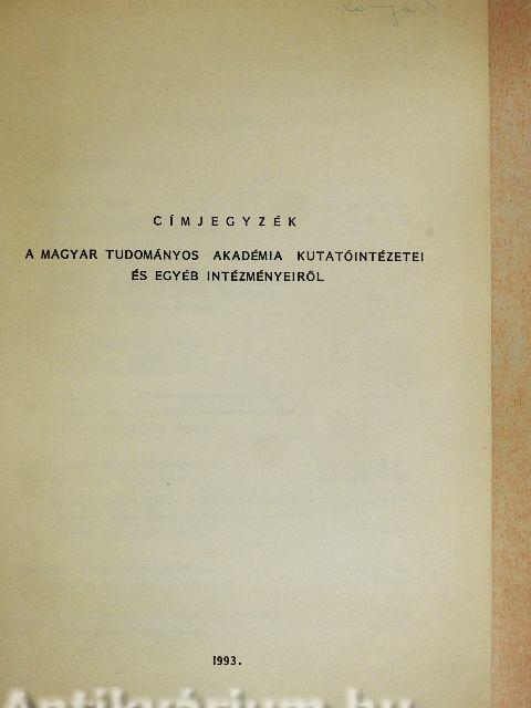 Címjegyzék a Magyar Tudományos Akadémia kutatóintézetei és egyéb intézményeiről
