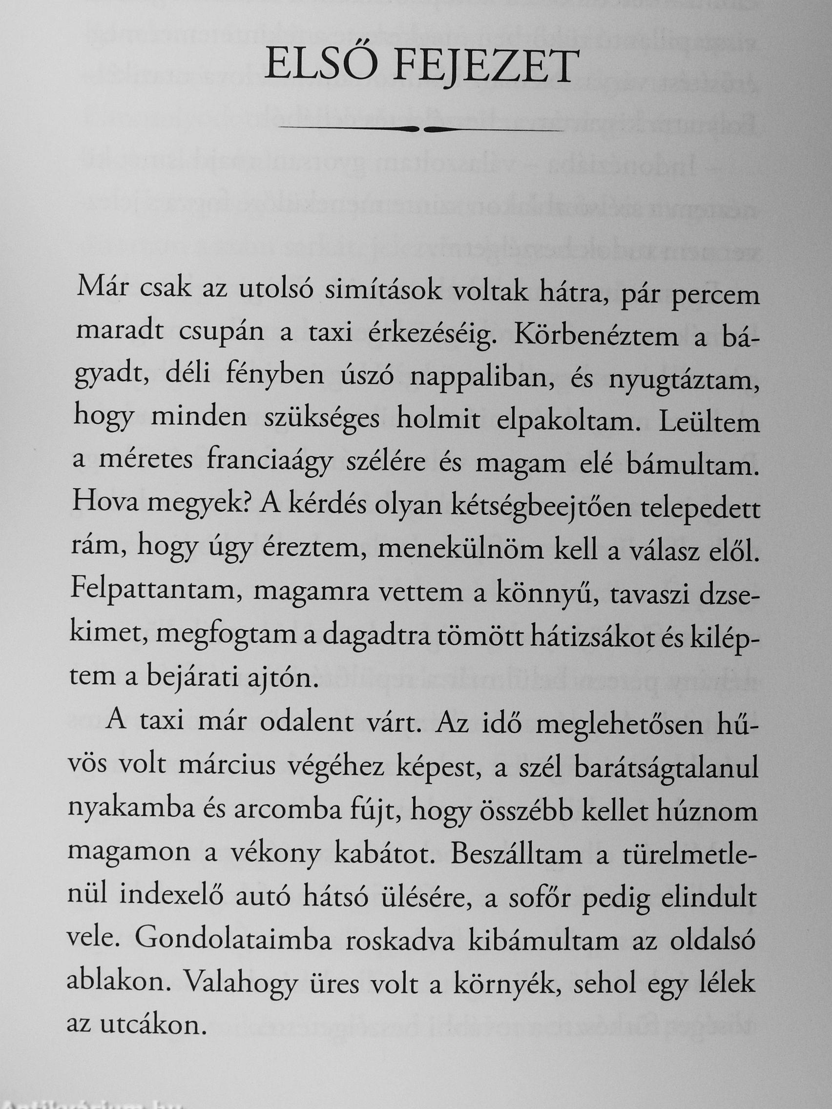 A SOKAT LÁTOTT ROBOGÓ NEHÉZKESEN GYORSULT. CSAK KÜZDÖTT ÉS KÜZDÖTT. MÍG VÉGÜL PERCEKKEL KÉSŐBB ELÉRTE MAXIMÁLIS SEBESSÉGÉT A KILENCVEN KILOMÉTER PER ÓRÁT. A SZÉL ARCOMBA CSAPOTT, AHOGY VÁLLA FÖLÖTT NÉZTEM AZ UTAT. NEM VOLT SE EMELKEDŐ, SE LEJTŐ, SE BUKKANÓ. SE KANYAR. CSAK A VÉGELÁTHATATLAN EGYENES ÚT.