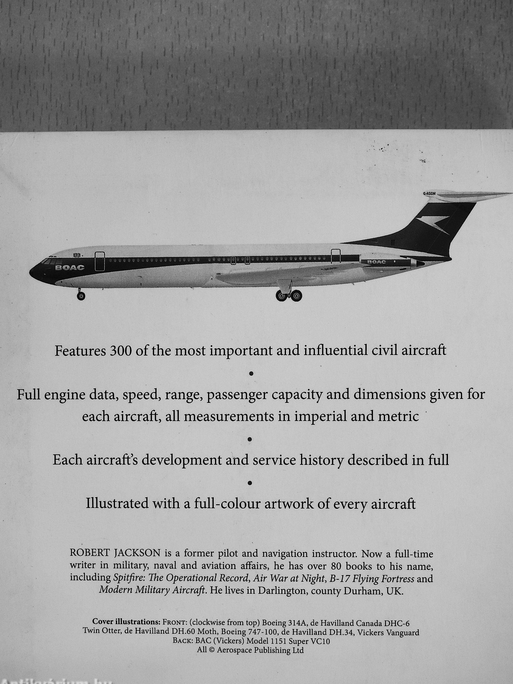 Cover illustrations: Front: (clockwise from top) Boeing 314A, de Havilland Canada DHC-6 Twin Otter, de Havilland DH.60 Moth, Boeing 747-100, de Havilland DH.34, Vickers Vanguard Back: BAC (Vickers) Model 1151 Super VCIO All a Aerospace Publishing Ltd