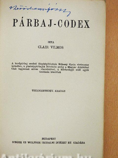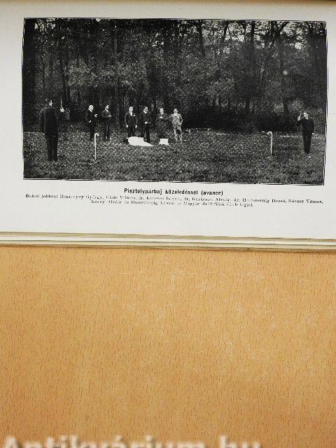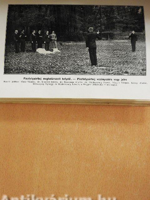 | Megjegyzés: | Tizenhetedik kiadás. A kardpárbaj eredeti fényképfelvétele Rákossy Gyula vívómester termében, a pisztolypárbajok felvételei pedig a Magyar Athlétikai Club tagjainak szíves részvételével, a hűvösvölgyi erdő egyik tisztásán készültek. Nyomtatta a Budapesti Hirlap nyomdája. |