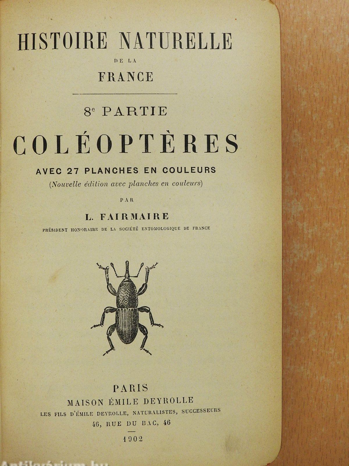| Sorozatcím: | Histoire Naturelle de la France |