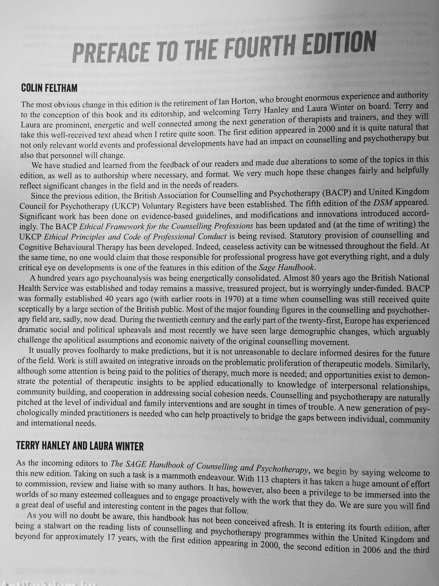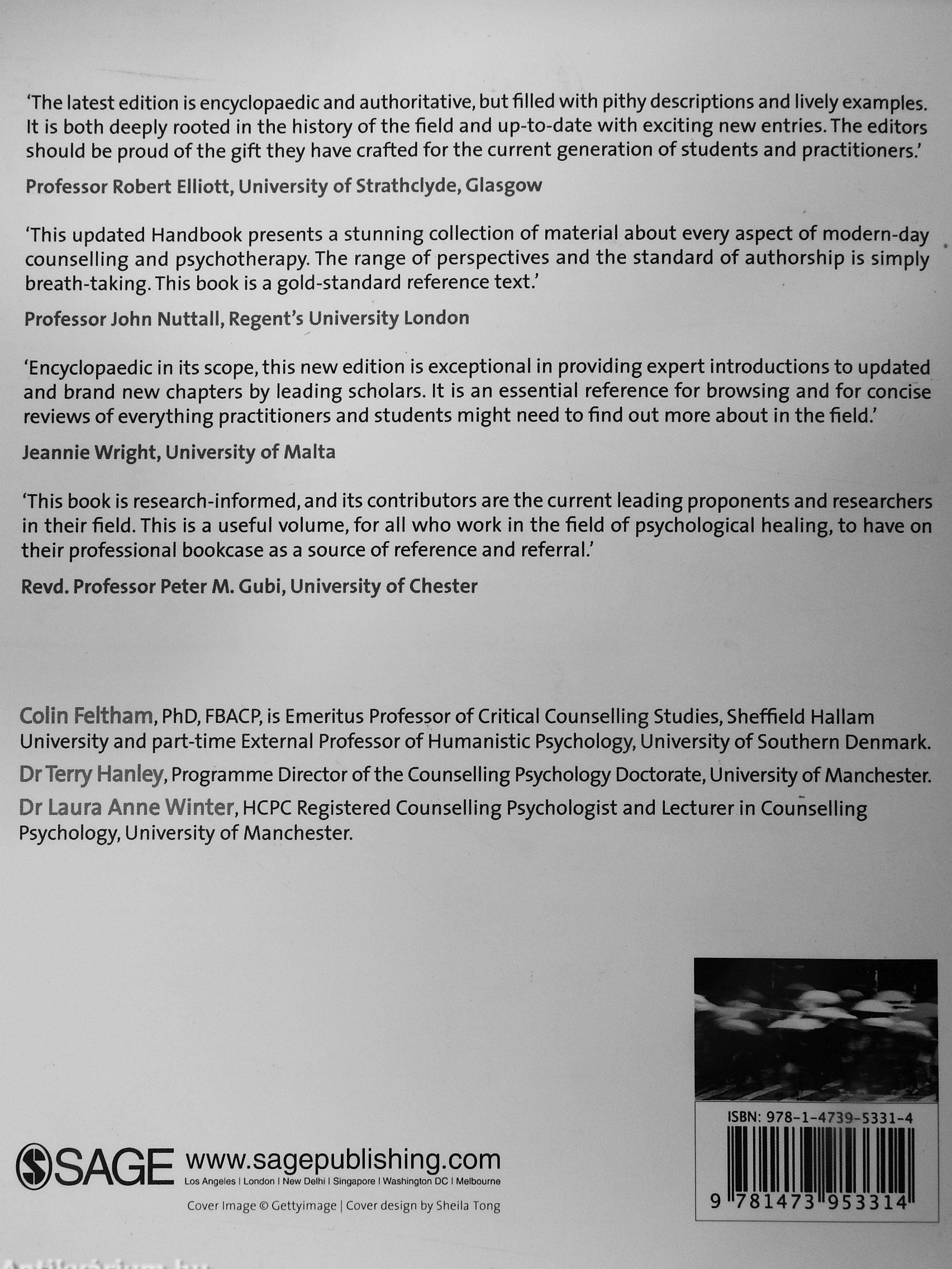 'This updated Handbook presents a stunning collection of material about every aspect of modern-day counselling and psychotherapy. The range of perspectives and the standard of authorship is simply breath-taking.This book is a gold-standard reference text.'