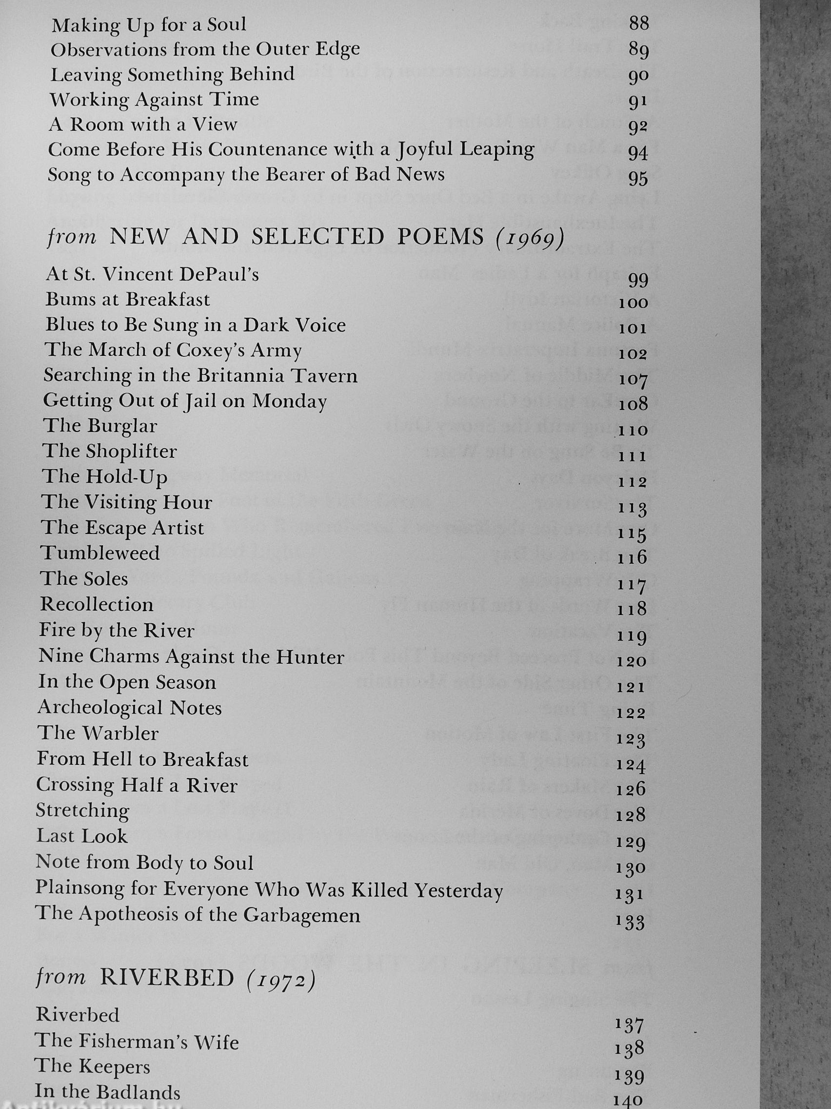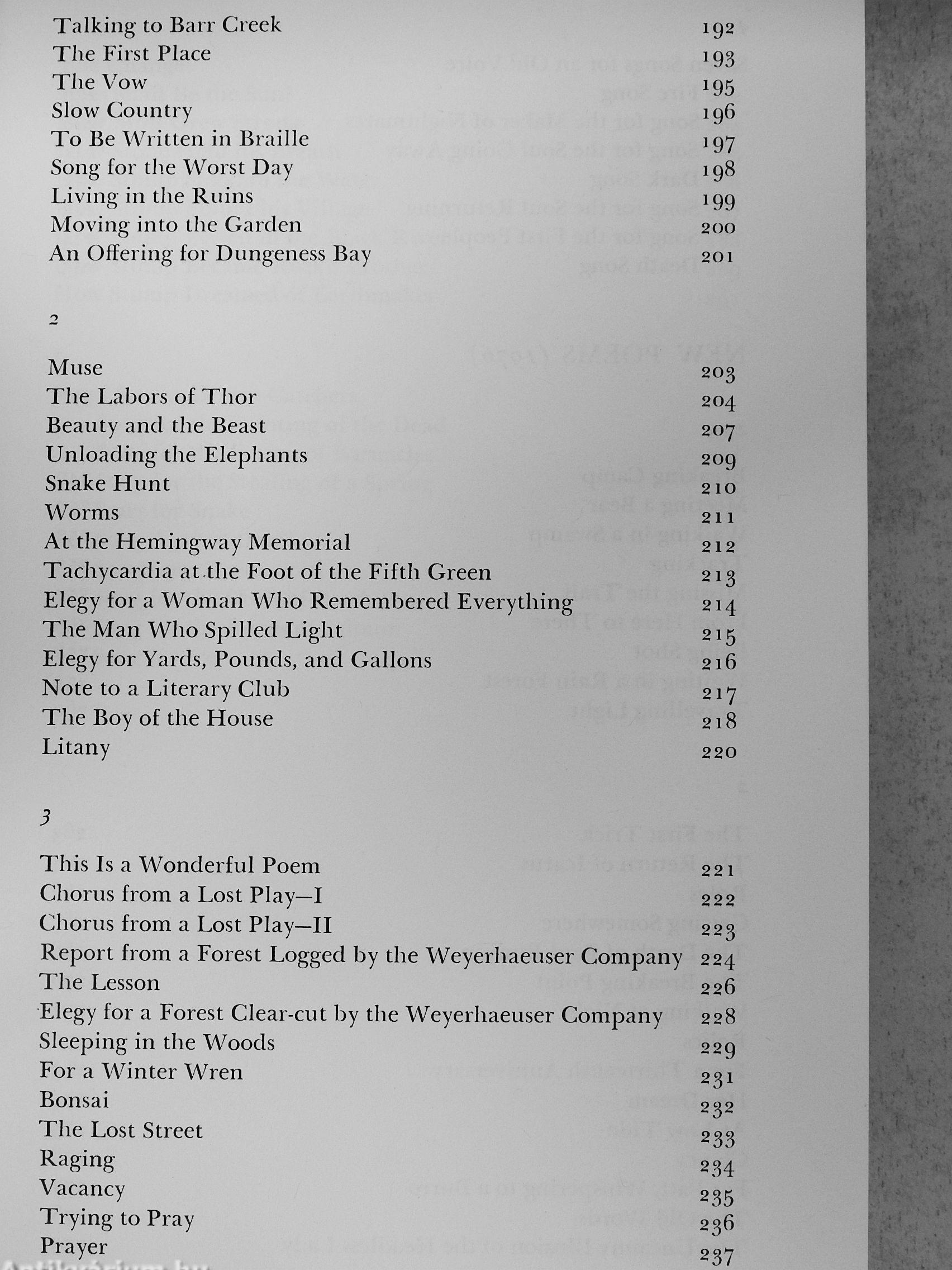 "His method is not to glance at nature and snap it into some moralizing allegory but, instead, to sink into nature, by an act of the imagination, and try to find what is there, really there, and common with himself. . . . [The] last poems . . . are among the best Wagoner has ever written—some are among the best anyone has written."